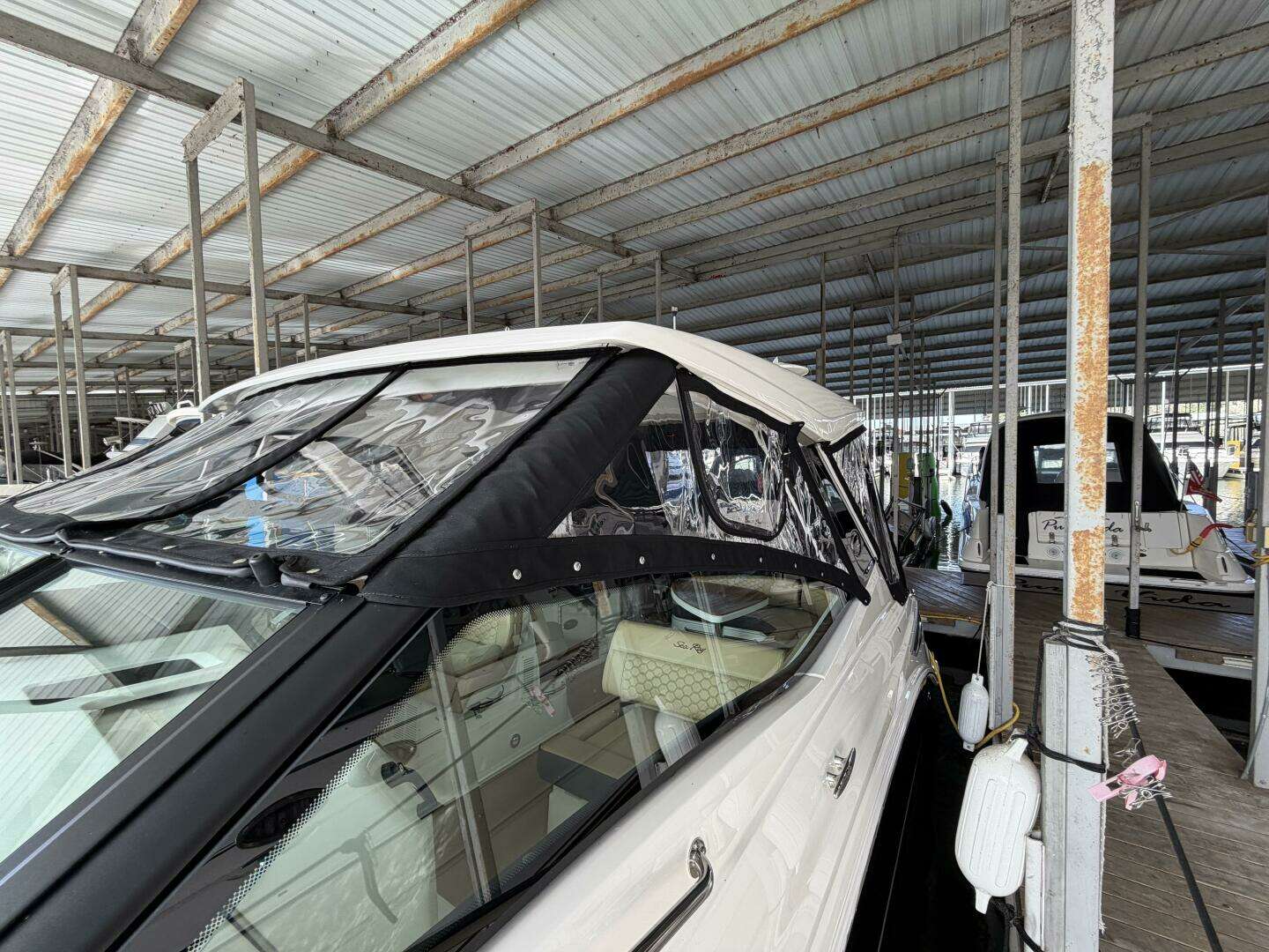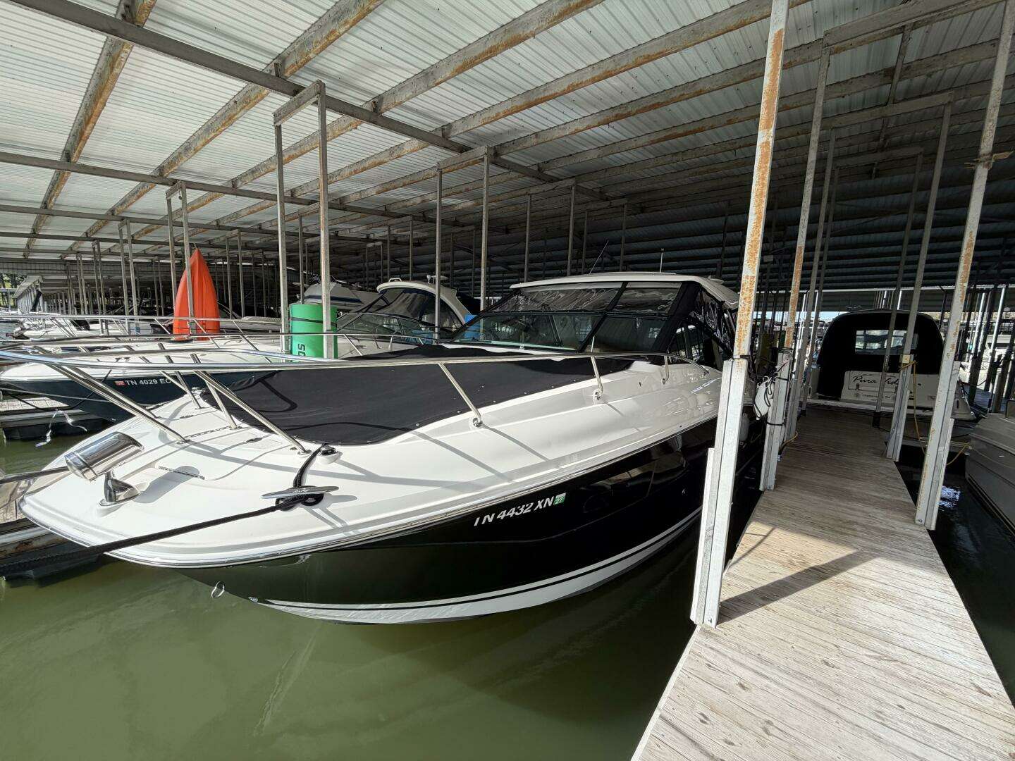This boat shows like a new one! It has full canvas enclosure, sea deck in the cockpit and platform, hydraulic swim platform; Black Bottom Paint; twin Simrads, Electric Extended Sunshade, Windlass with SS anchor, Gen & AC, Cockpit Grill, Cockpit Fridge, Upgrade Stereo System, under hardtop Tower Speakers, Bow Table, Cockpit Filler Cushions, Transom Sunpad Seating, Flatscreen TV's, Fender Clips and Spot Light.