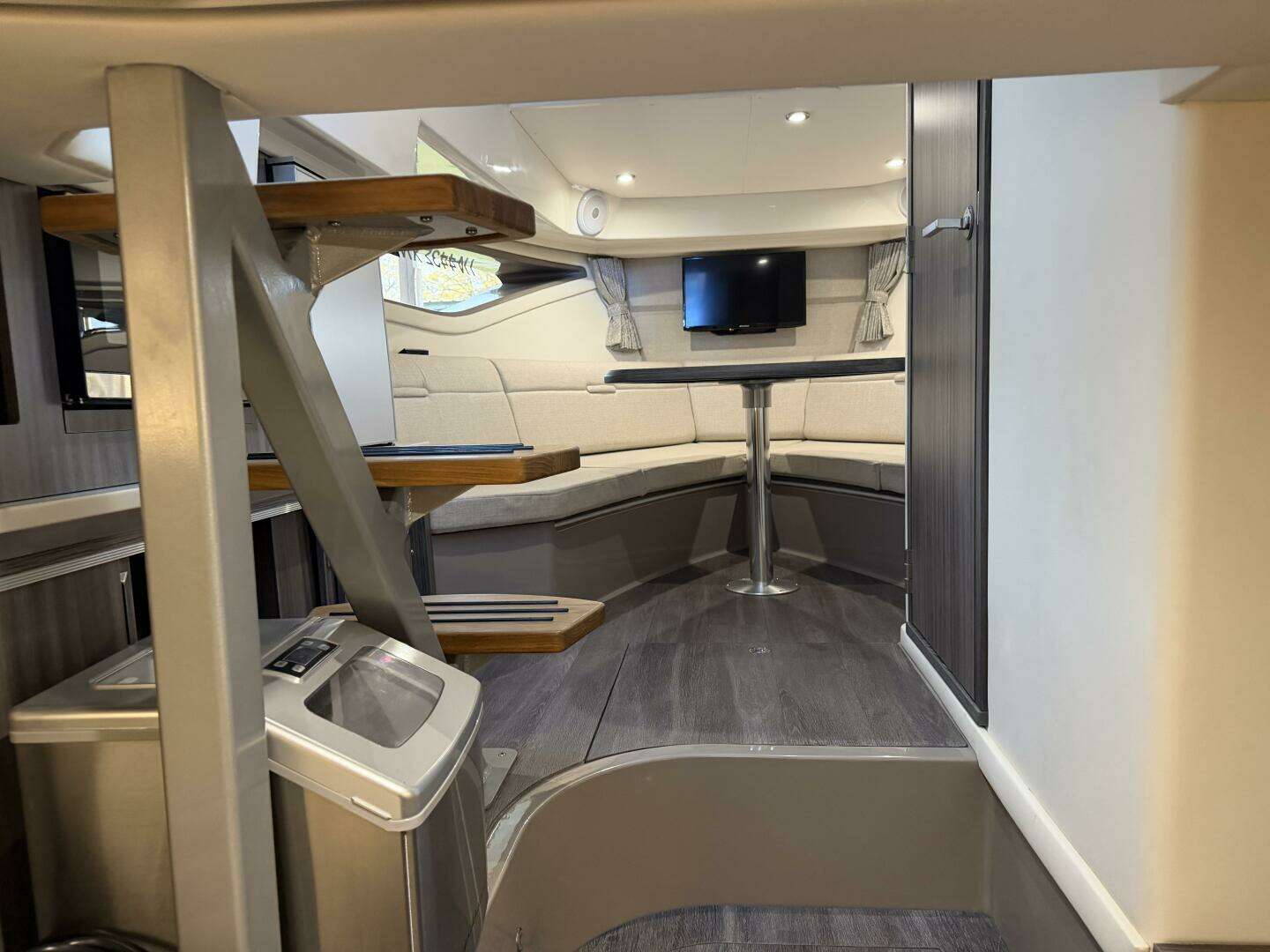 This is a one owner boat that has been kept here on B-dock since new. It only has 82hrs on twin 350hp Axius merc’s.