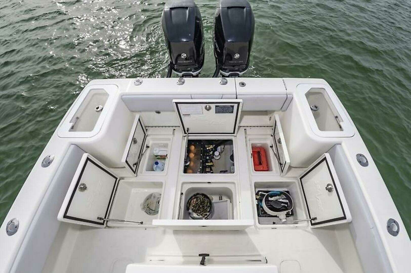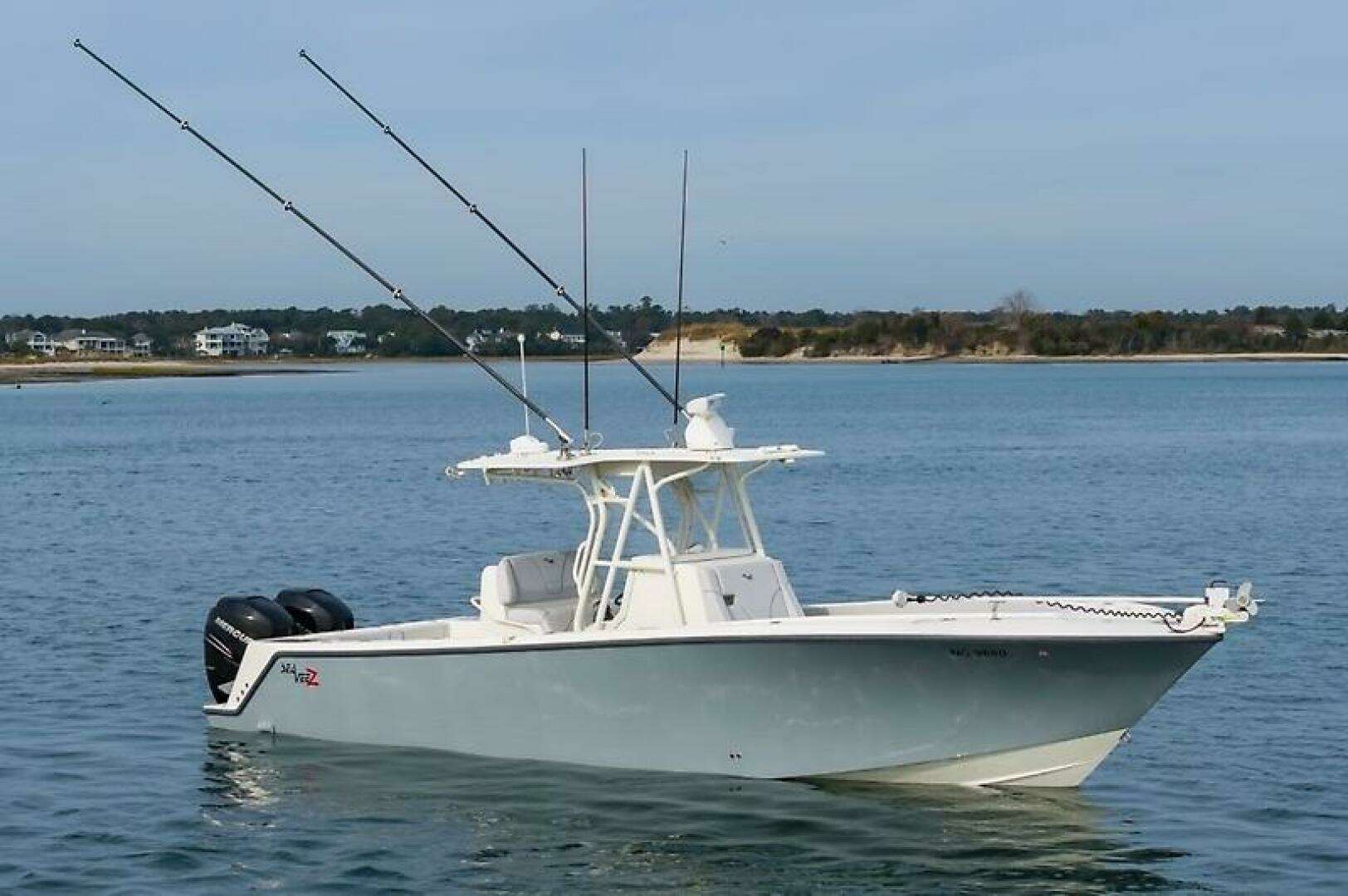 This 2020 SeaVee 322z is new to the market, and ready for her next offshore adventure. She’s powered with twin L6 Mercury 350s with low hours, features a full Garmin electronics package, GemLux outriggers, Rodan trolling motor and more(see list below). Contact Preston Frieze with Bluewater Yacht Sales for more information today (910)473-2628.