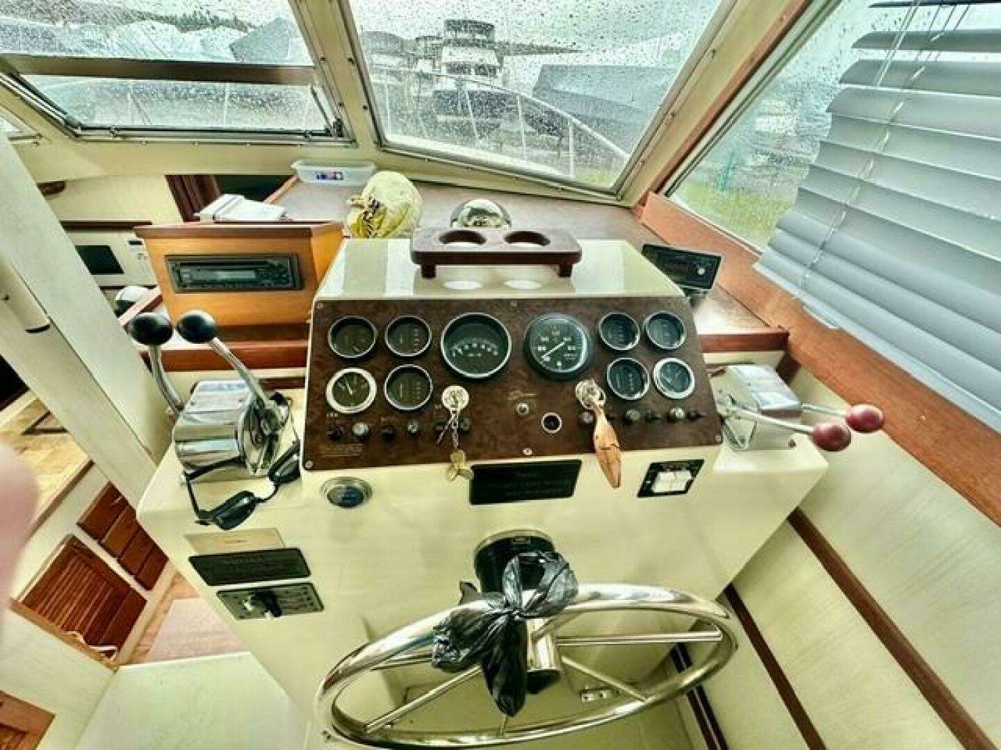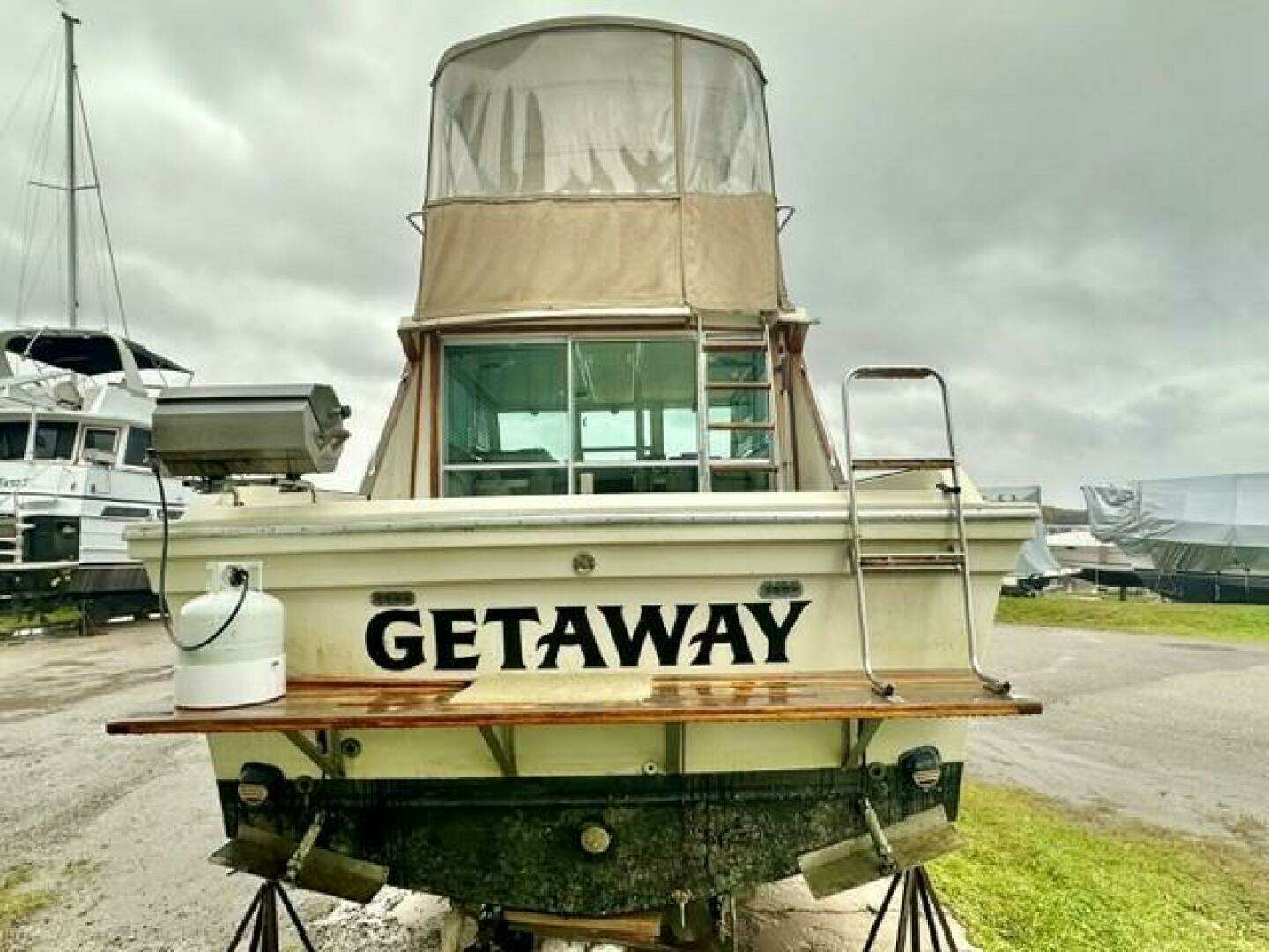 A popular model for Stamas, the 32 Sport Fisherman is a sturdy flybridge fishing boat with a roomy cockpit and practical cabin accommodations. She’s built on a solid fiberglass modified-V hull with moderate beam, and a well-flared bow makes for a dry ride in a chop. With the lower helm open to the cockpit, the layout of this boat is ideal for anglers (although a sliding glass bulkhead enclosure was optional). A dinette opposite the helm is a convenient place to get out of the sun, and down below there’s a small galley to port and a head with a sink and shower opposite. Lockers separate this space from the forward stateroom with its long V-berth. The cockpit is large enough to accommodate a full-size fighting chair, and the side decks are about as wide as you’ll ever see on a boat this size. Topside, the bridge controls are well aft affording a clear view of the cockpit. Additional features include a vented windshield, bridge seating for three, and good engine access. Several engine options were offered over the years. Among the most popular, a pair of 260hp gas inboards cruise the Stamas 32 at 18 knots (about 27 knots top), and larger 330hp gas engines cruise in the low 20s and top out at 30+ knots.