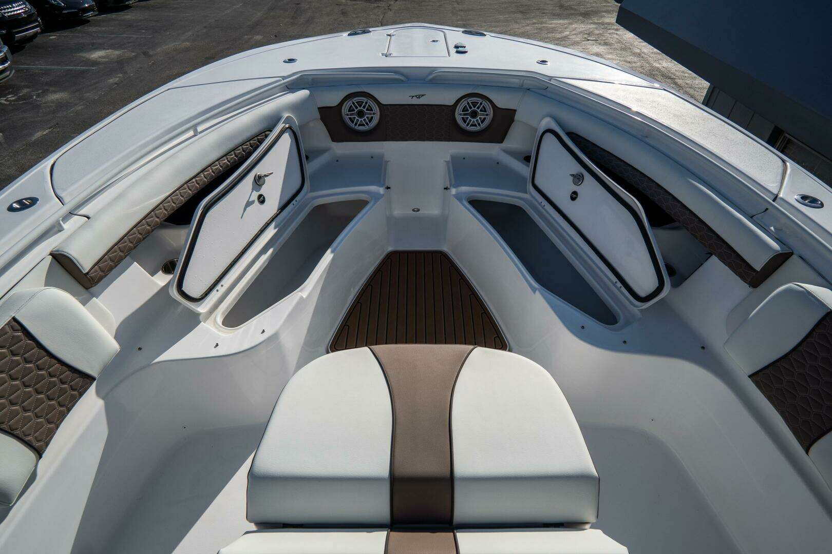 This 2021 Tidewater 320 CC Adventure delivers the perfect blend of offshore performance, luxury, and fish-ready functionality. Powered by twin Mercury 400 XL Verados (800 total horsepower) with sleek white-painted motors, this boat offers exceptional speed, efficiency, and reliability for serious anglers and families alike.