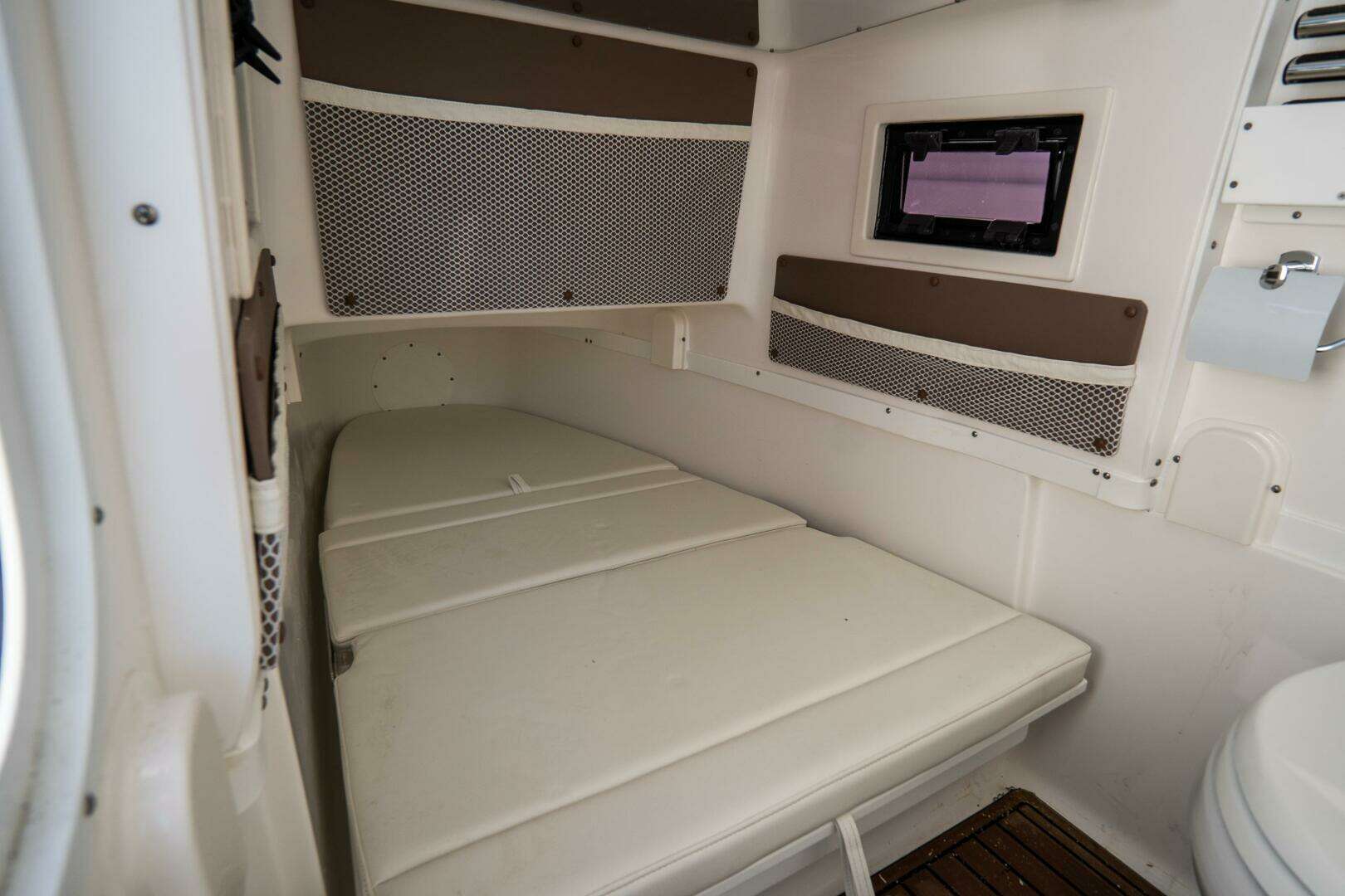 Additional upgrades include dual Carframo Sirocco II Elite 12V cabin fans, professional electronics installation, and used boat dealer prep completed for turnkey delivery.