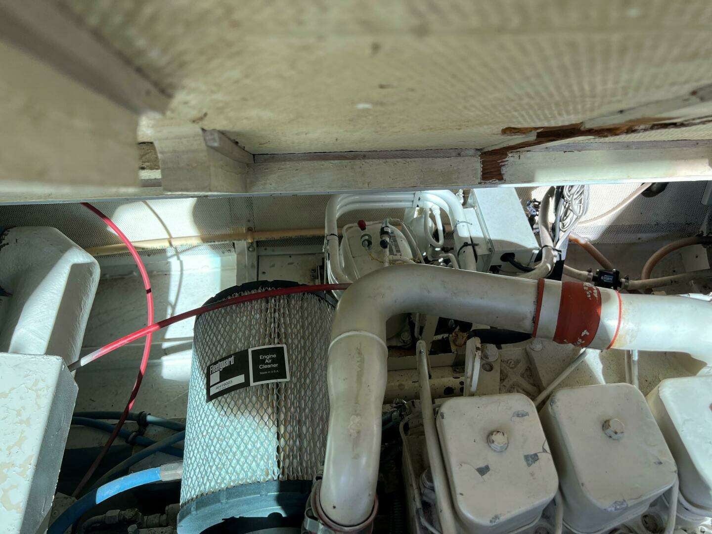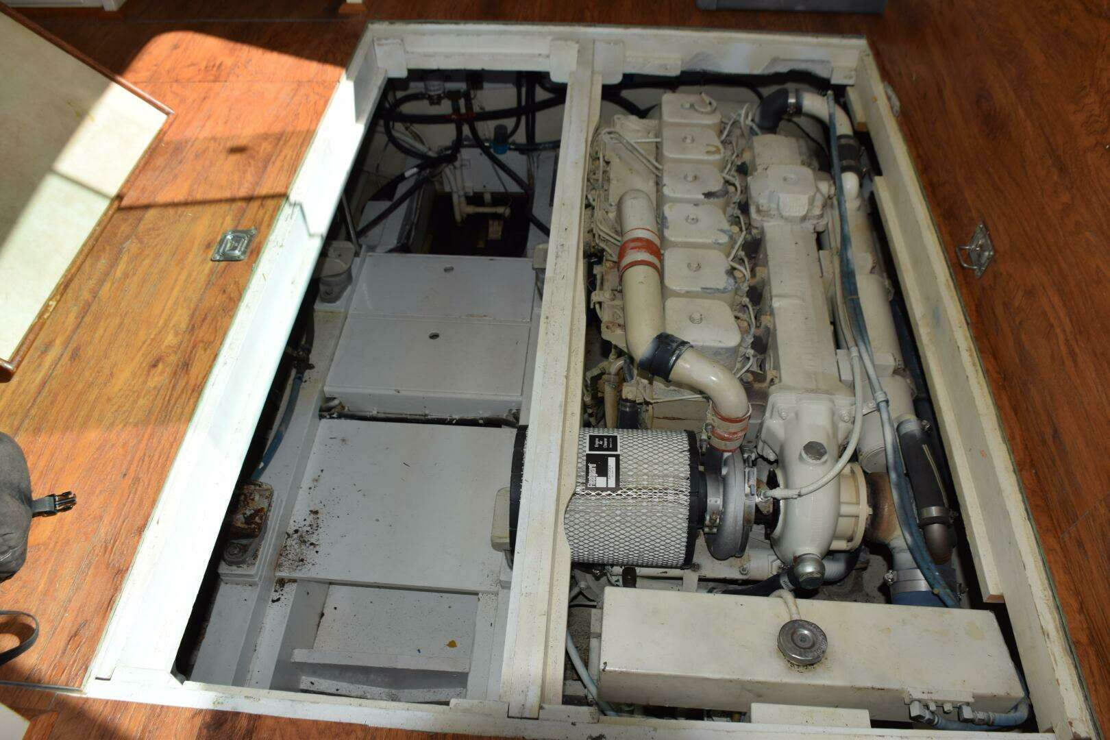 - Main engines were installed by Whiticar in 1990 and are Cummins 5.9ltr BTs at 210hp each and have approximately 688 running hours since install. They have Twin Disc MG 502-1 transmissions with trolling valves. Reported to be very economical with possibly only 10 gallons per hour burn at reasonable cruising speed.