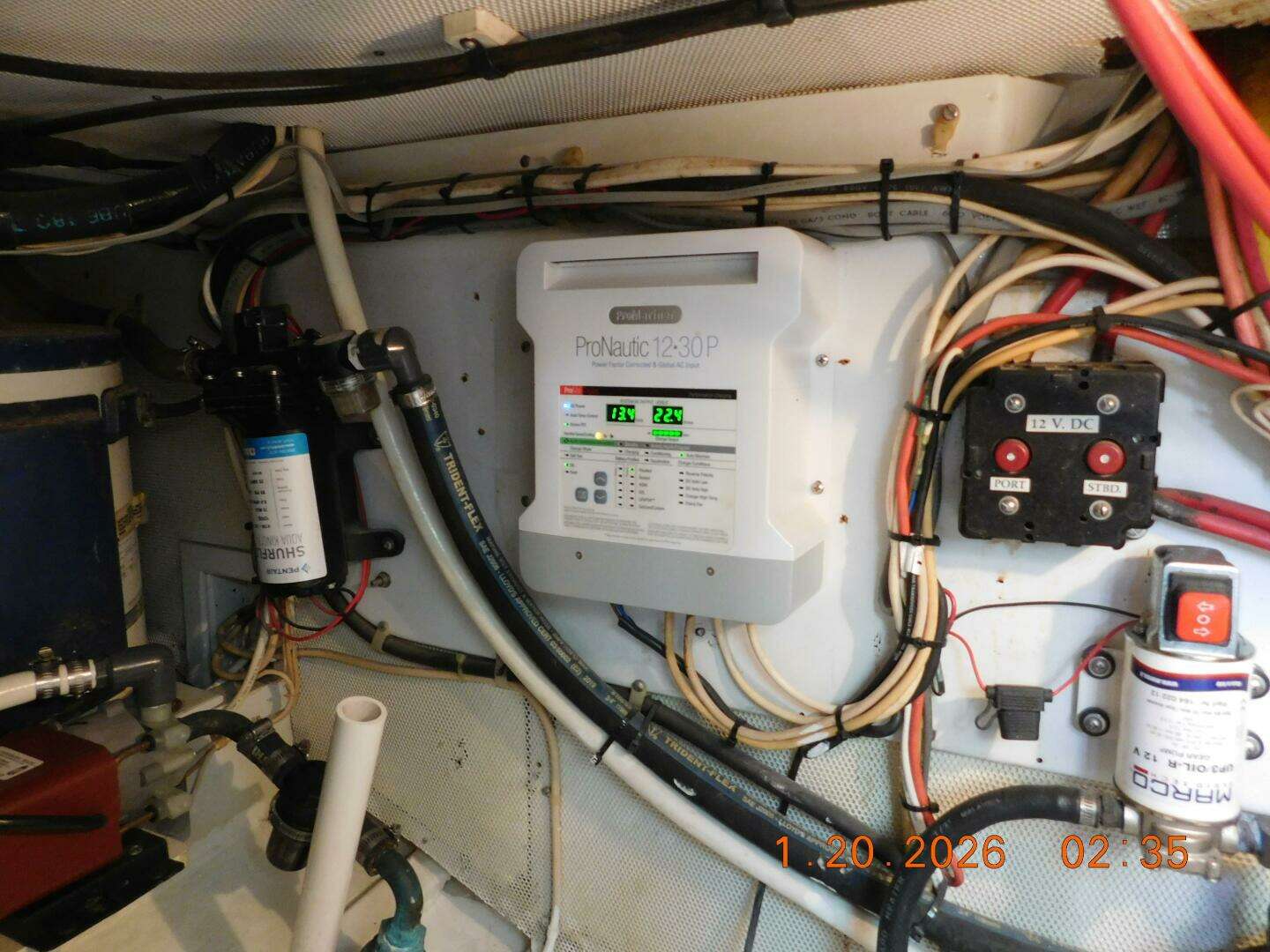 - 12V / 110V DC and AC electrical system, main electrical panel in salon