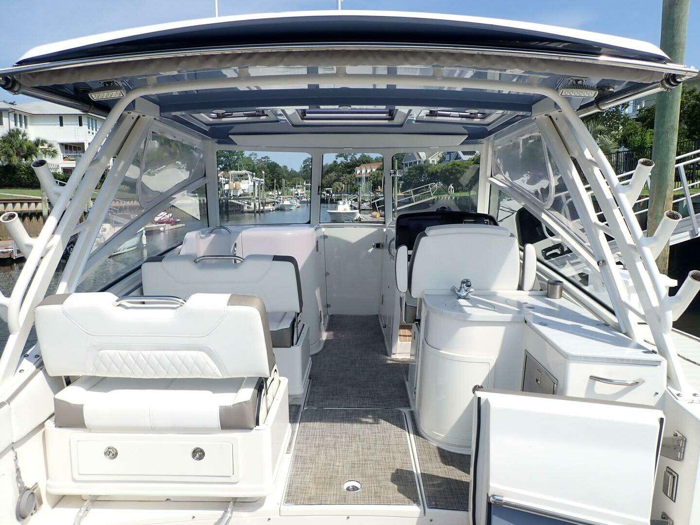 Yamaha YES Warranty through 9/2/26 Introducing the 2022 World Cat 325 DC, a remarkable power catamaran that combines elegance and performance. With an overall length of 32.17 feet, this vessel is crafted from durable fiberglass, ensuring both strength and stability on the water. It is powered by tw