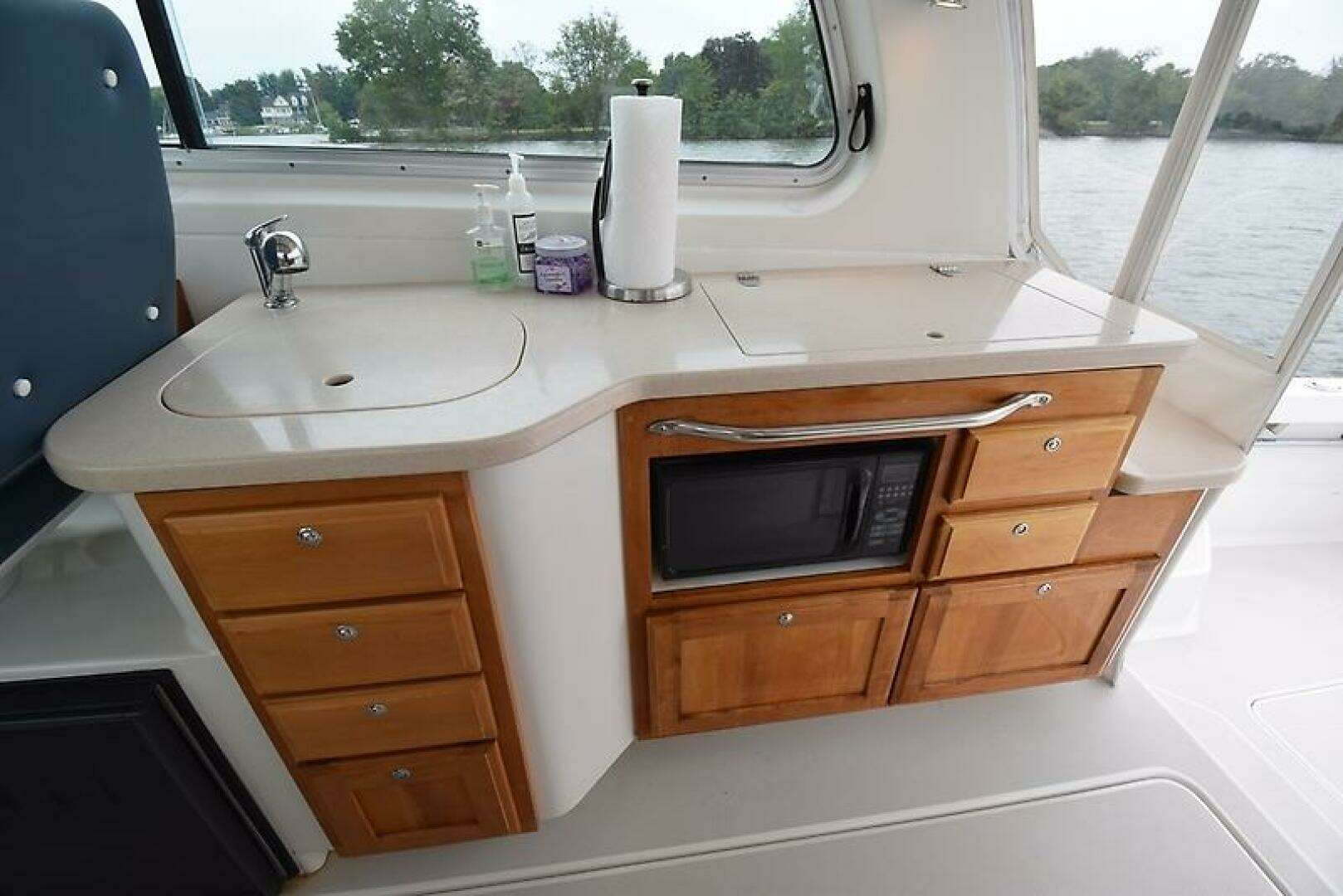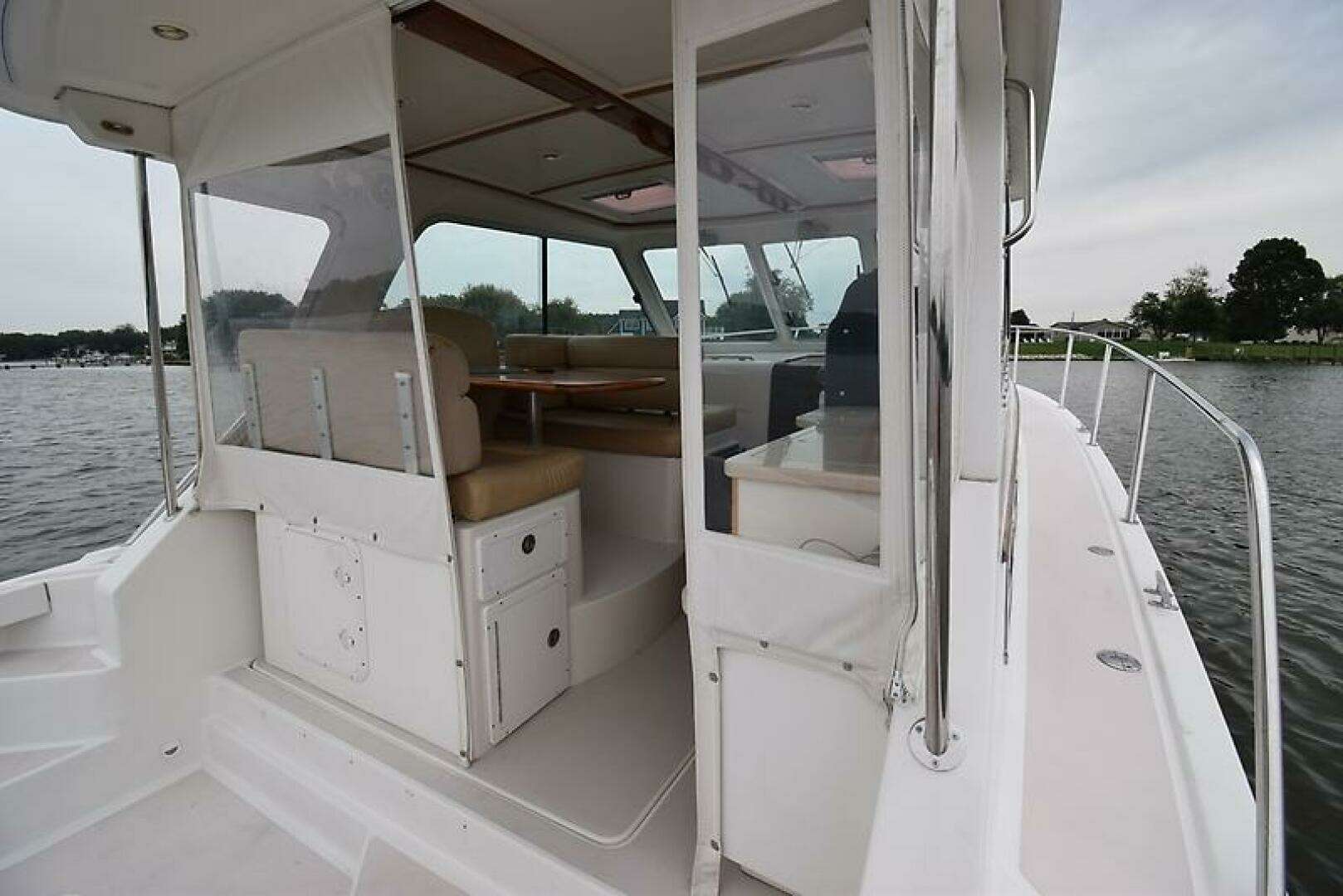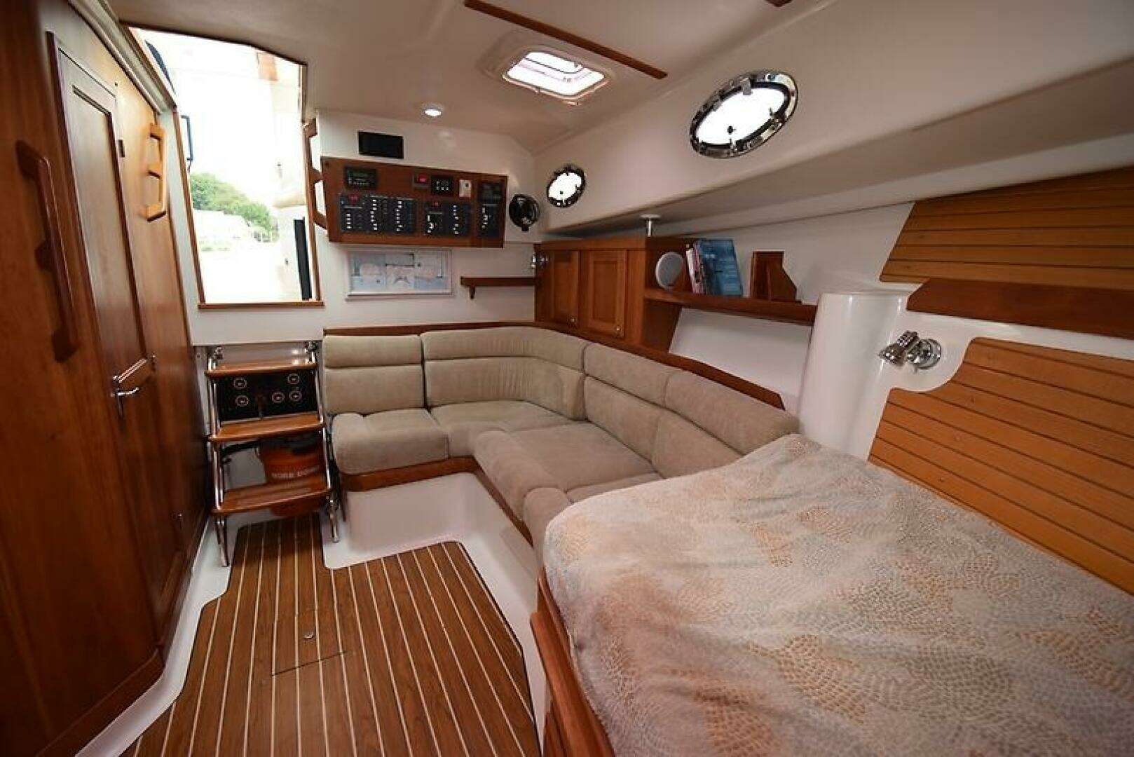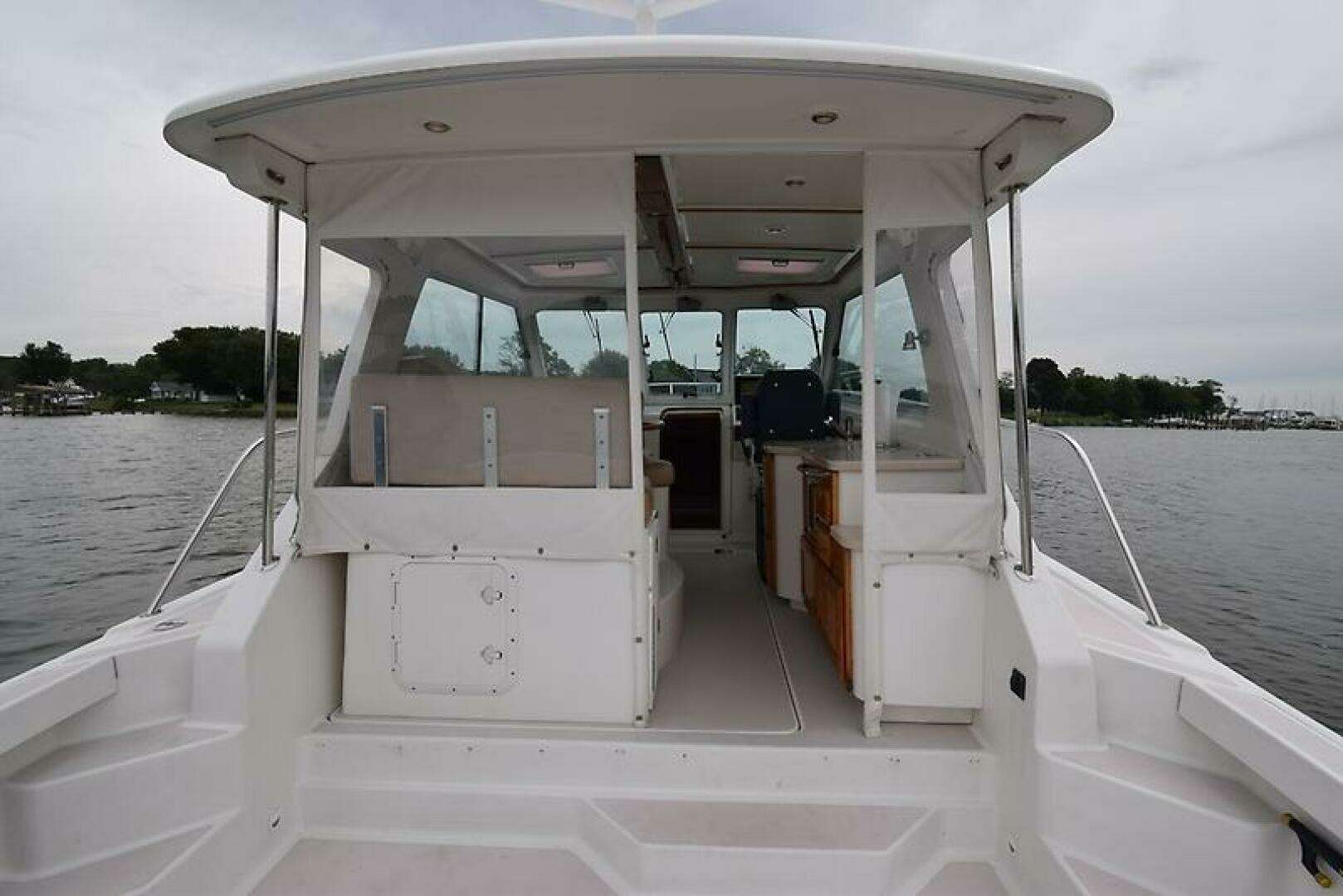Back in her slip following Trawler fest 2025 in Baltimore, this elegant Fighting Lady Yellow Back Cove 33 with single Yanmar diesel power and bow and stern thrusters is ready for her new home. She's a second owner boat that's been cruising in the Chesapeake Bay for the last 5 years and the owner is moving up to a larger Back Cove. Very clean inside and out with all the versatility and comfort the 33 is known for. Fuel efficient, easy to maintain, and a pleasure to run. Great visibility with an open and airy interior including a separate shower! Call, text or email today to set up an appointment to get aboard.