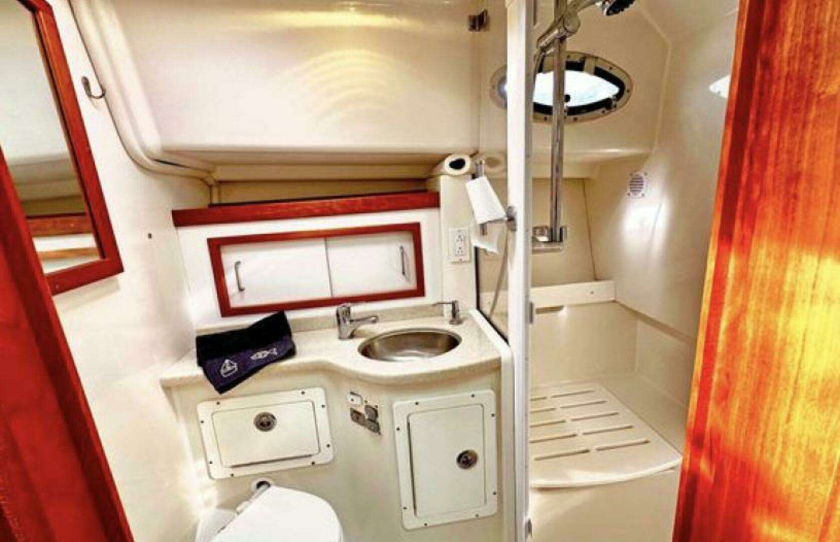 The Back Cove 33 is a yacht with the same simple features, usability, and maintenance that have built the popularity of the Back Cove brand. Below the deck is a large and comfortable vee-berth, convertible L-settee with a beautifully inlaid salon table. To starboard, we created a large head with a s