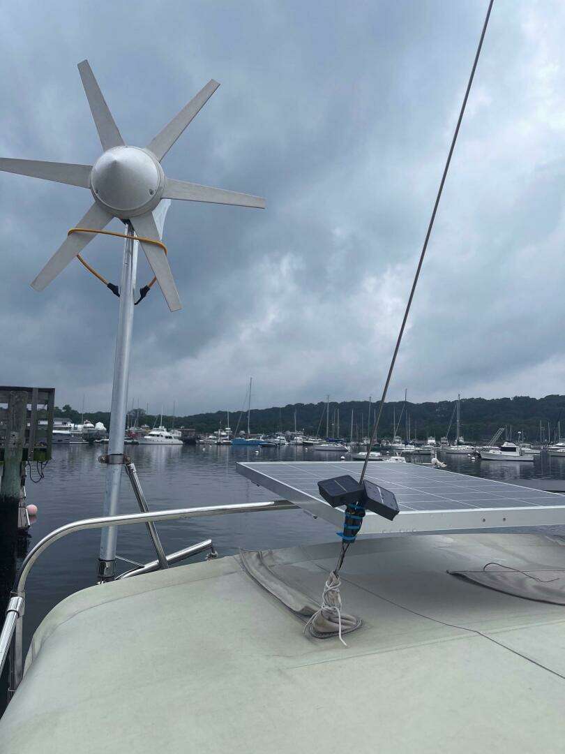 Midship starboardside head with manual toilet, shower, pressure hot & cold water, holding tank, macerator, Y-valve, head level monitor. Additional 12v water heater coil.