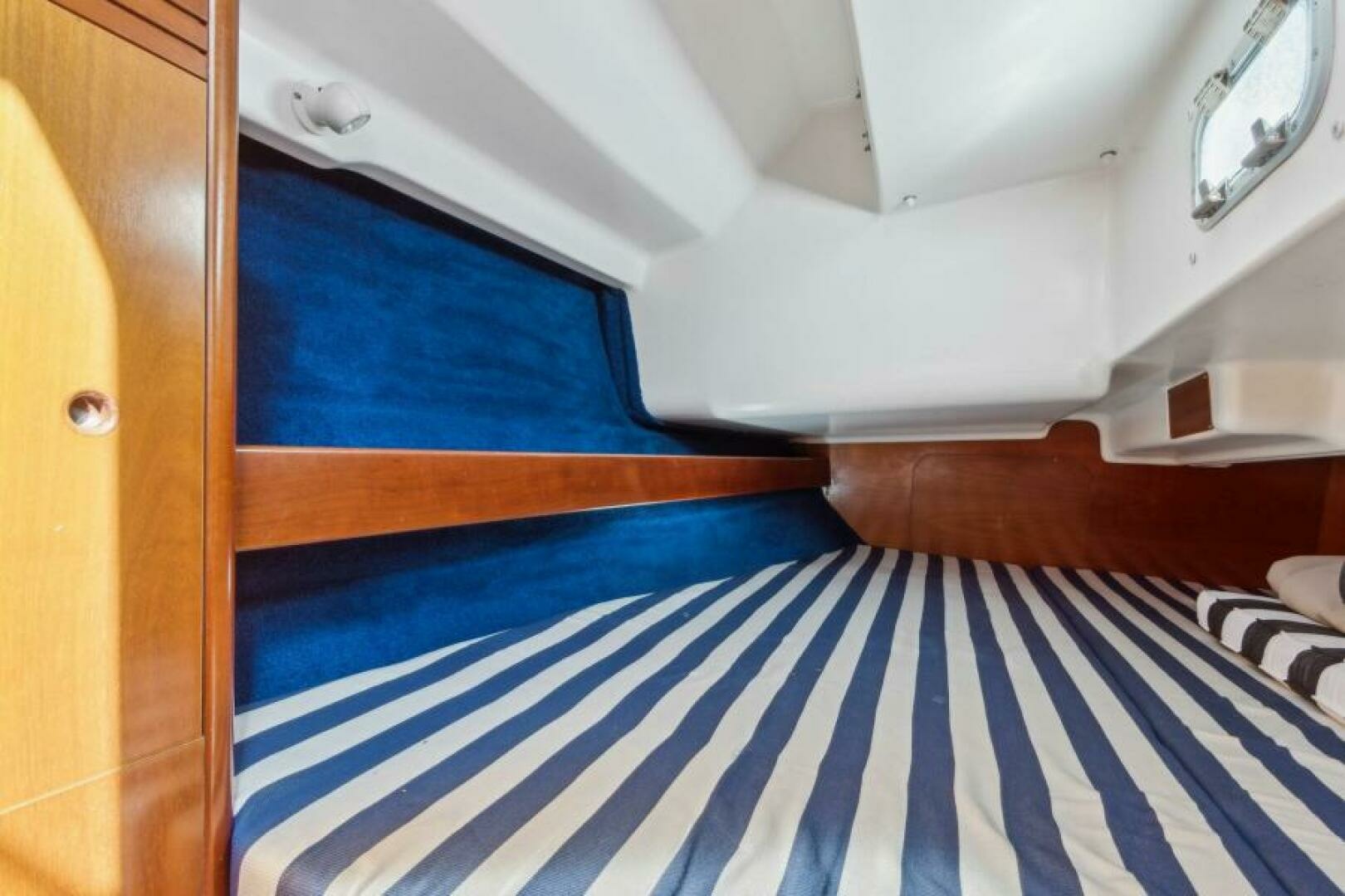 - Nav Station: Port side wood with storage and light
