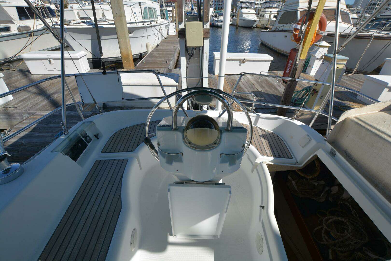 She has a berth with a filler forward. Next is her salon with Galley and head at it's aft section. Under the cockpit is her master with a full berth. Her cockpit has all lines lead aft for ease of handling and features seating on both sides and across the transom. Her center section of the transom seat is removable to access the swim step.