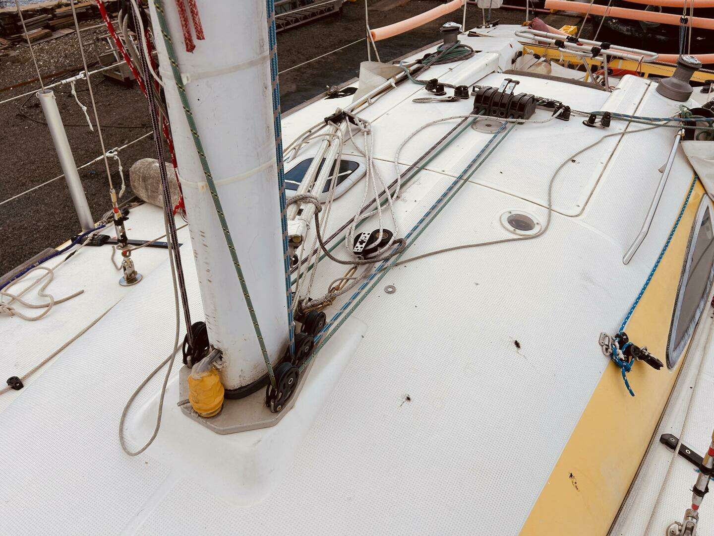 - Harken jib foil was damaged and subsequently removed in favor of soft shackle hanks.