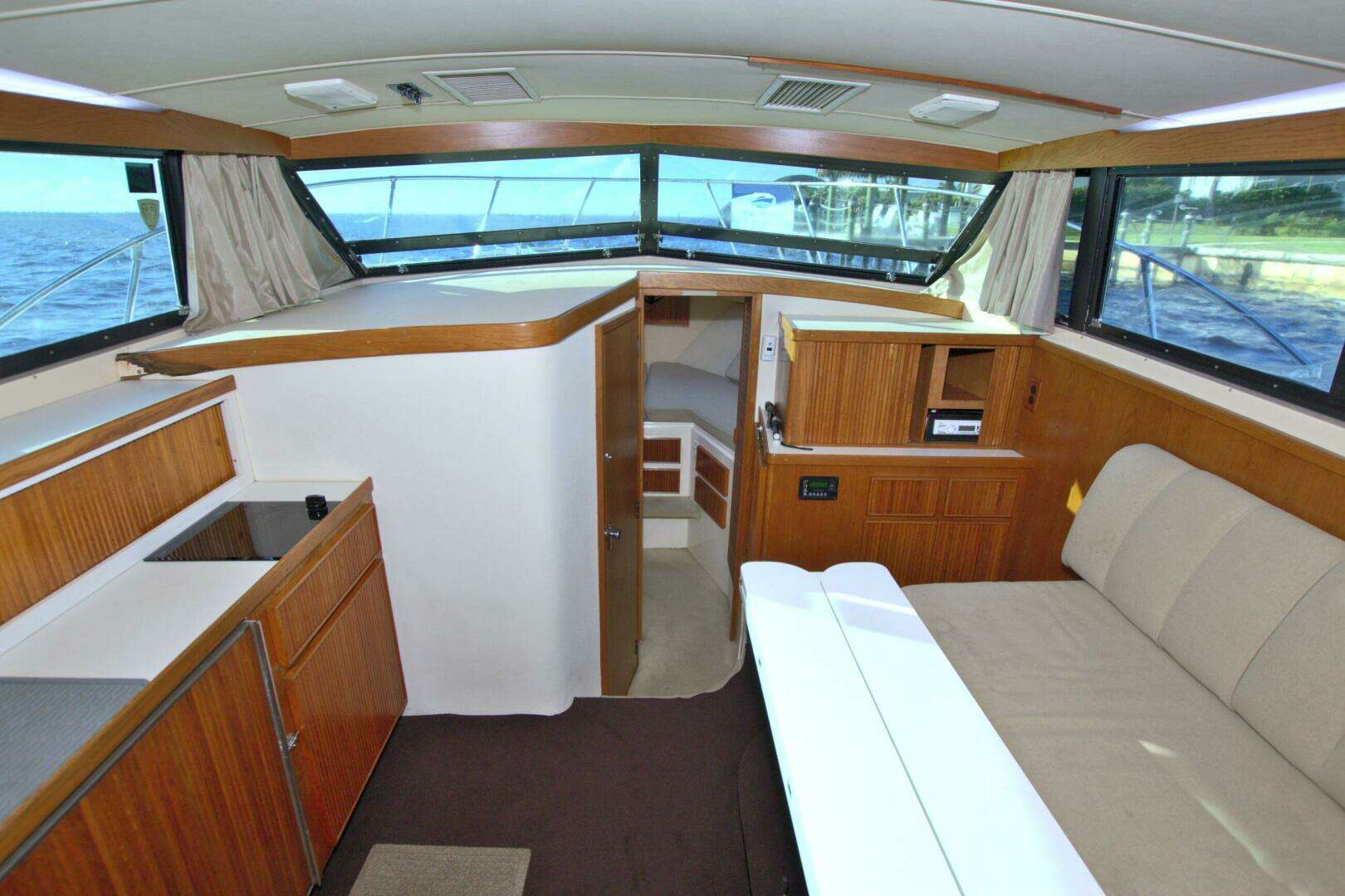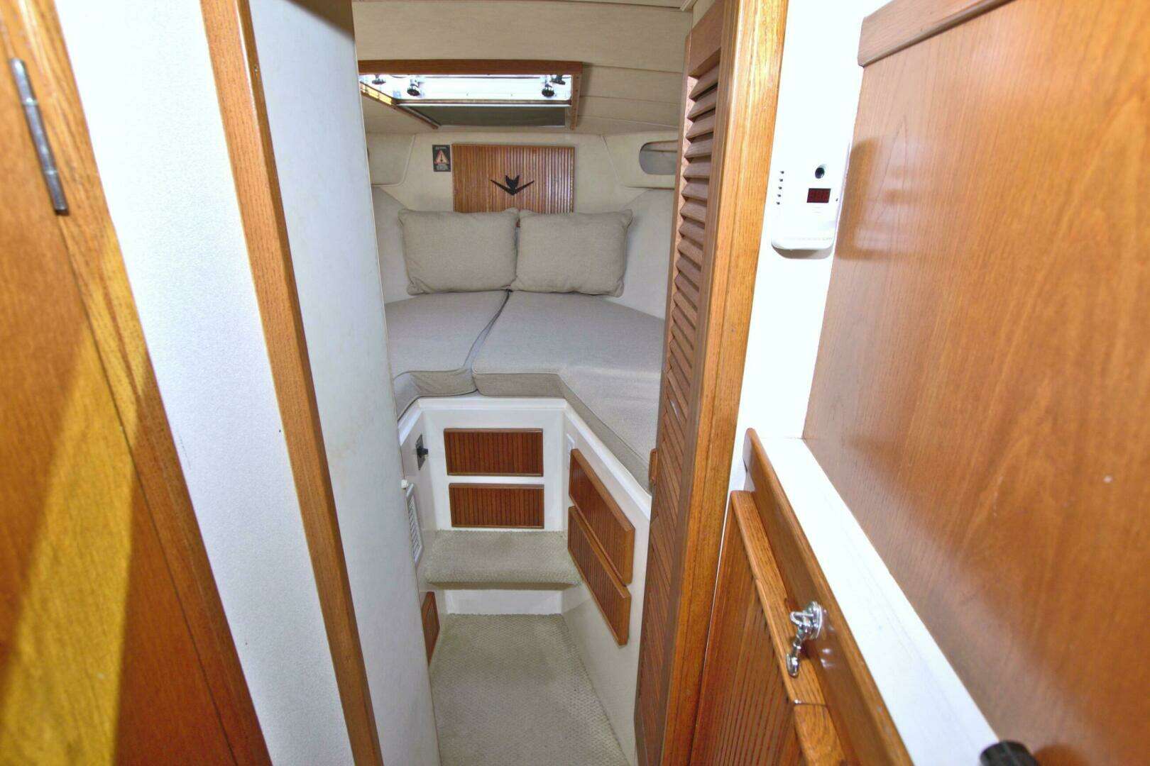 - Interior: Air-conditioned salon, galley with SubZero refrigerator/freezer, V-berth master, guest stateroom with bunks, and private head with stall shower