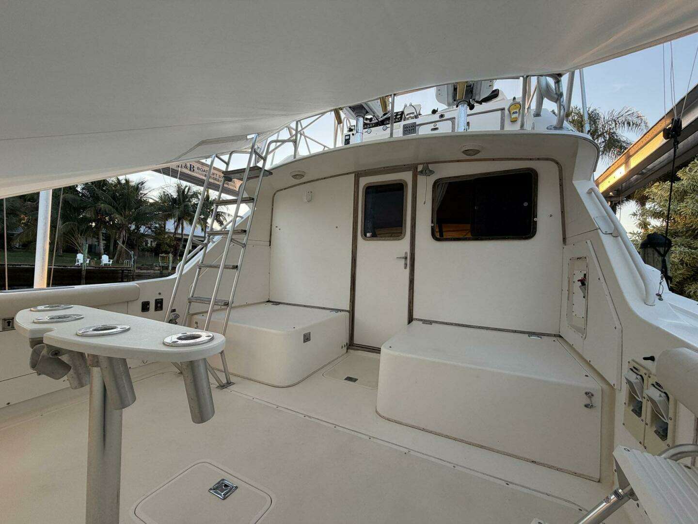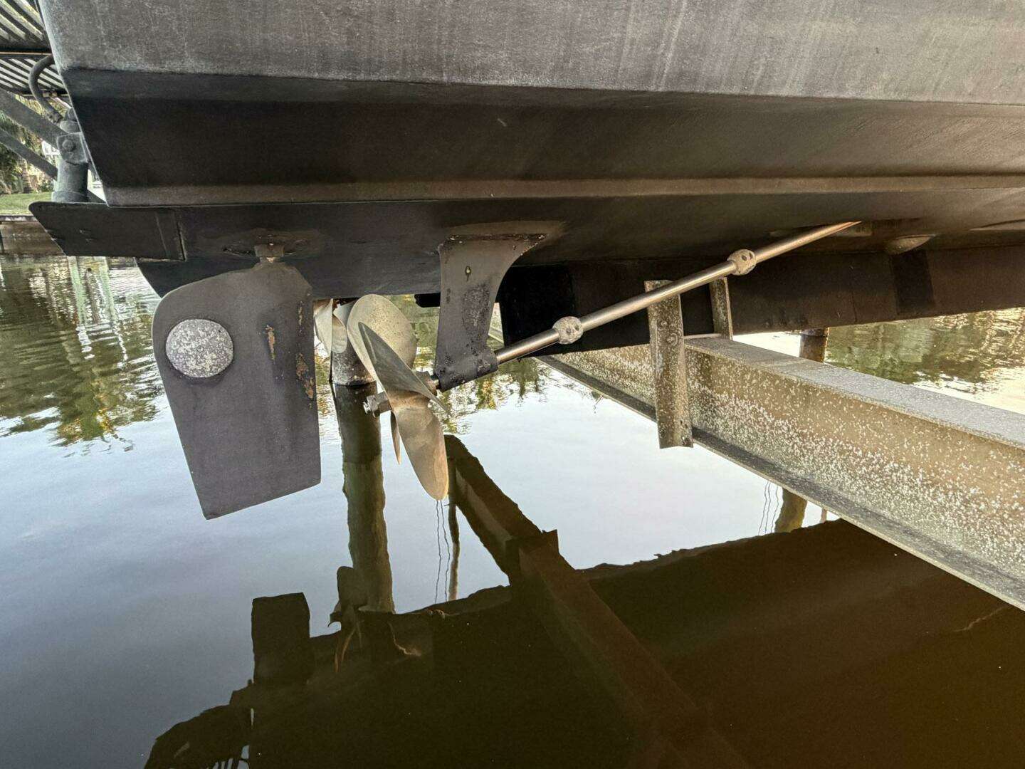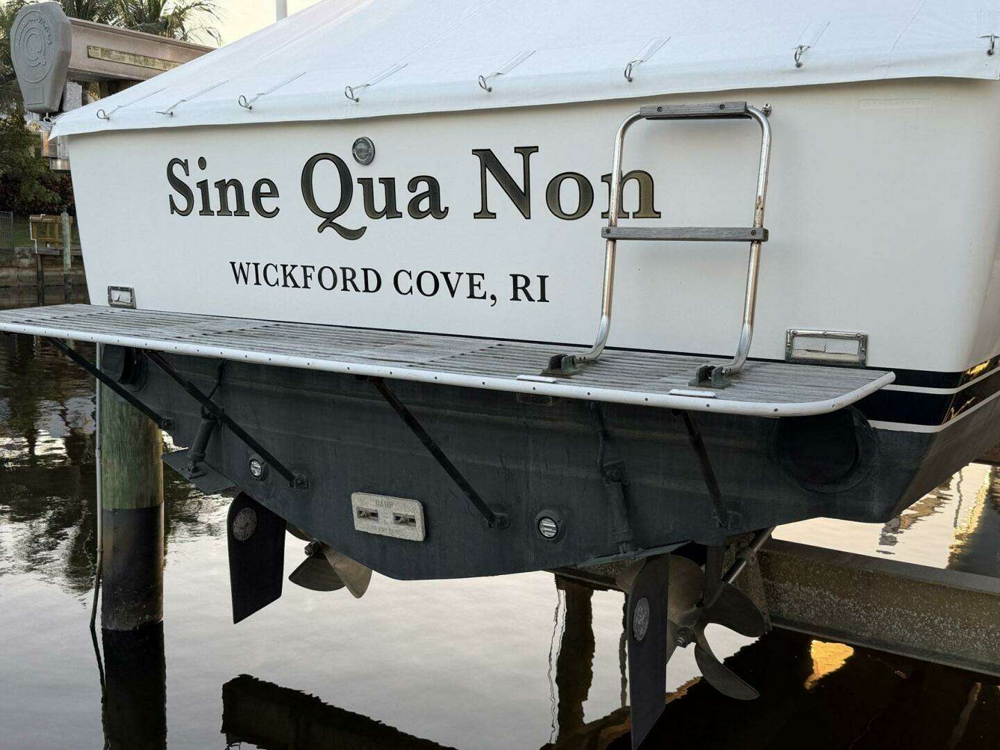 The boat has been stored on a lift out of water for at least 19 years.