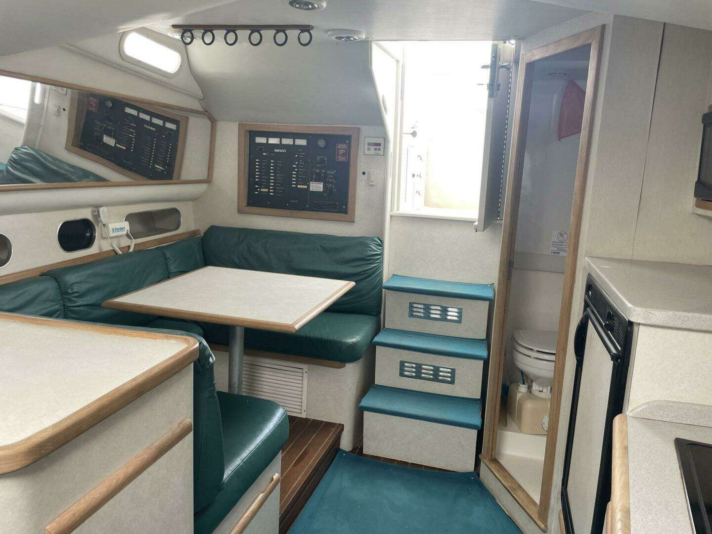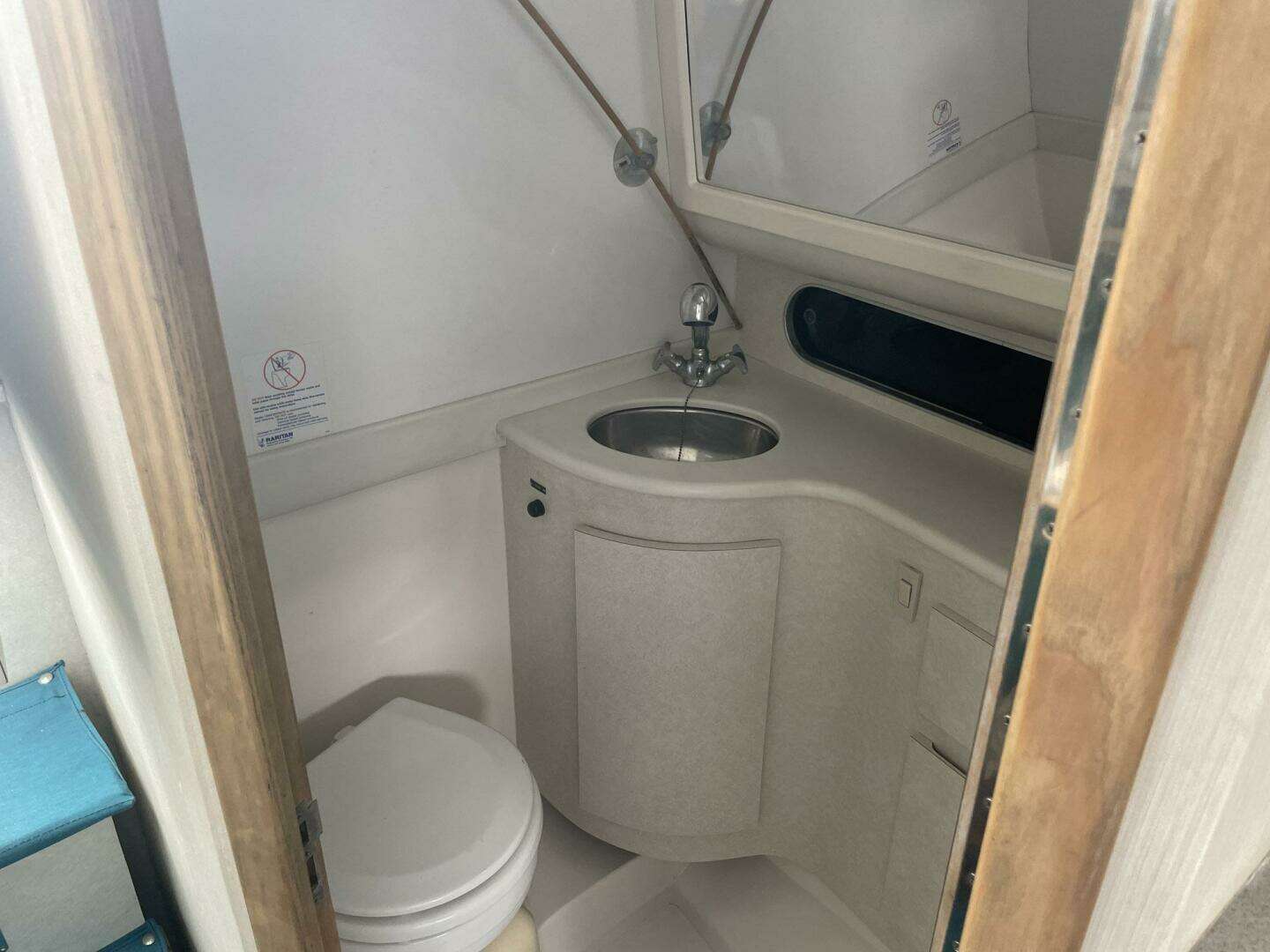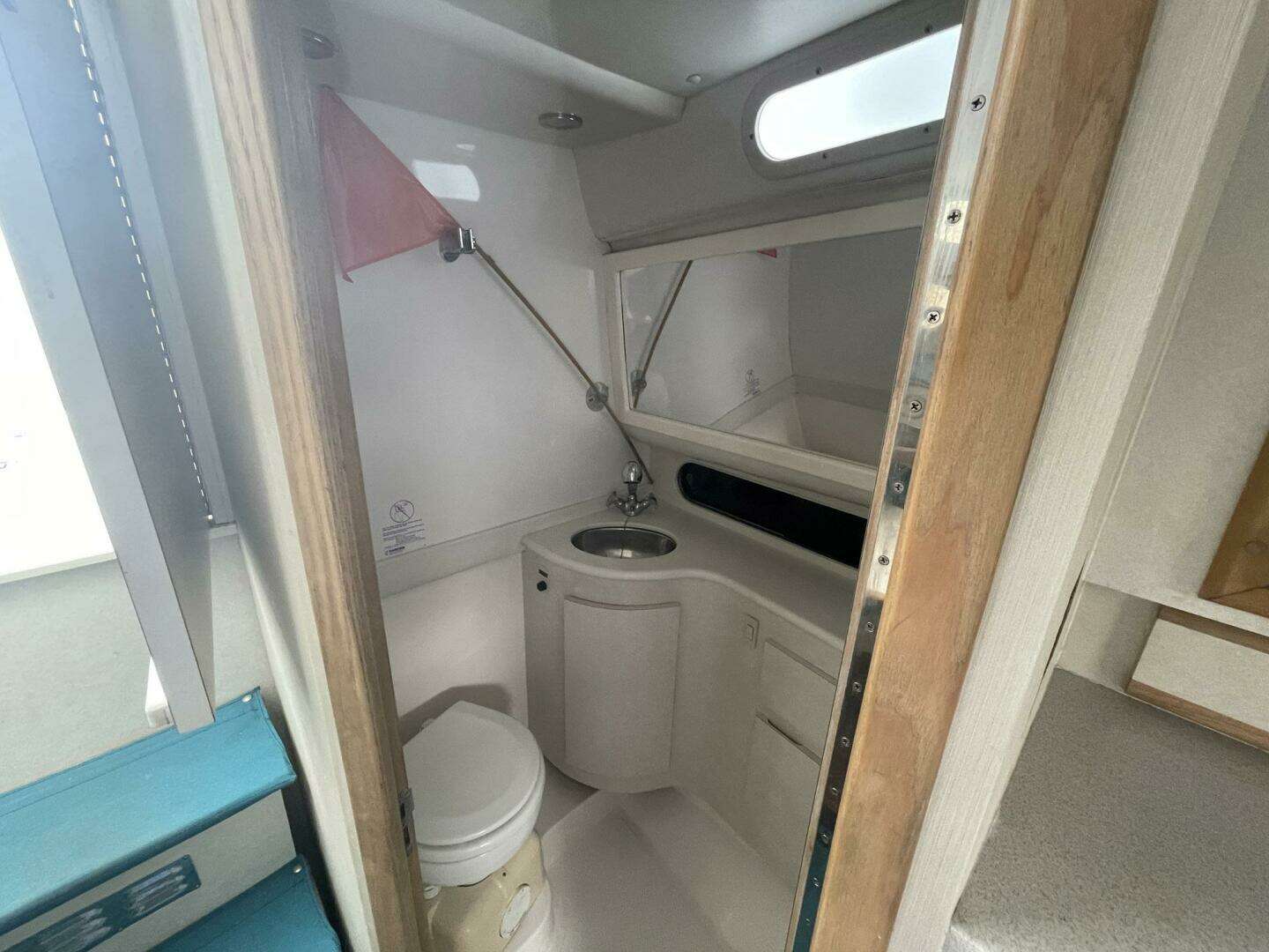 - Head is Aft and to Port, it is a Wet Head with a Shower Head, Sink, Electric Toilet and Storage Overhead Rod Racks