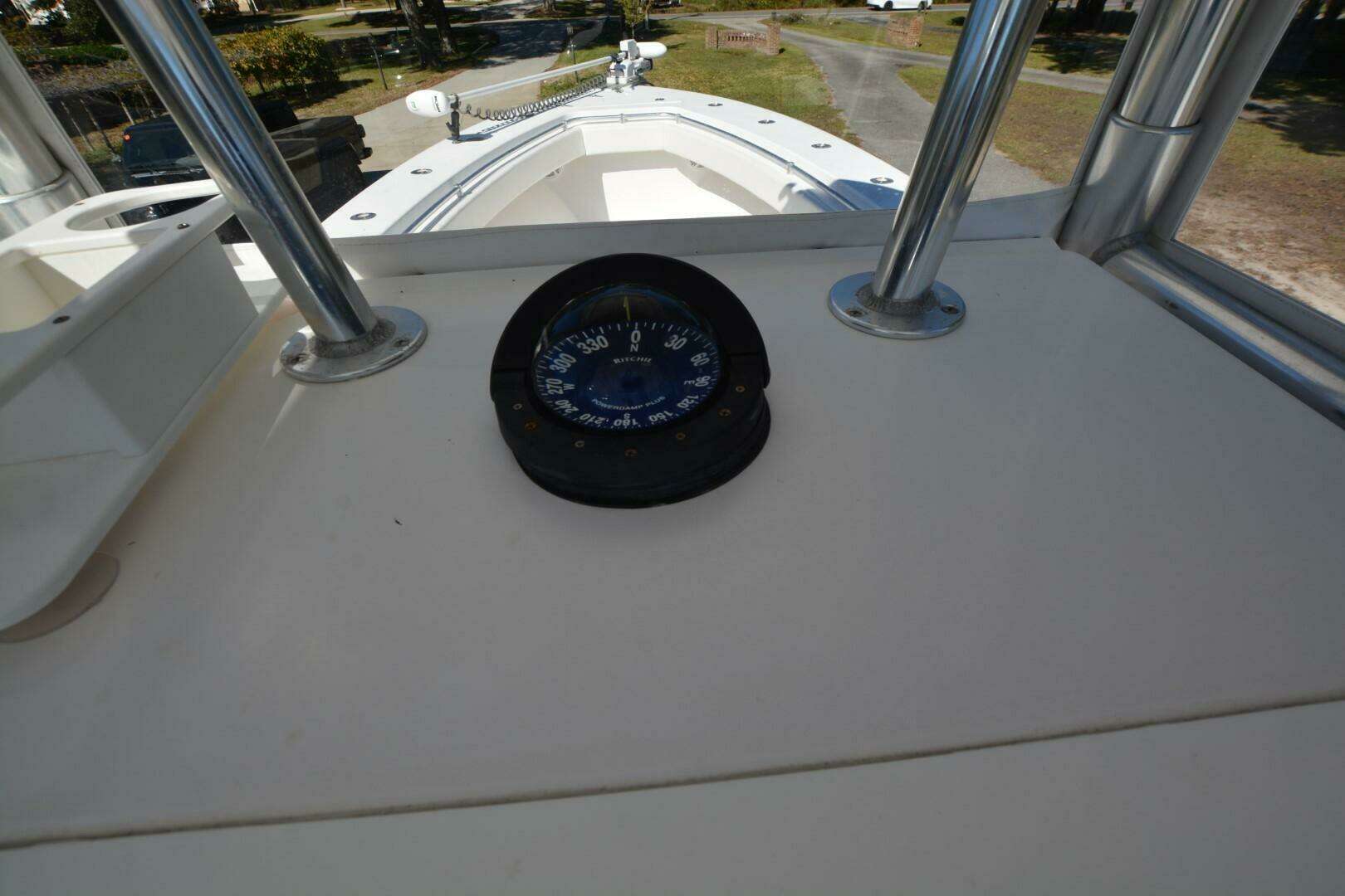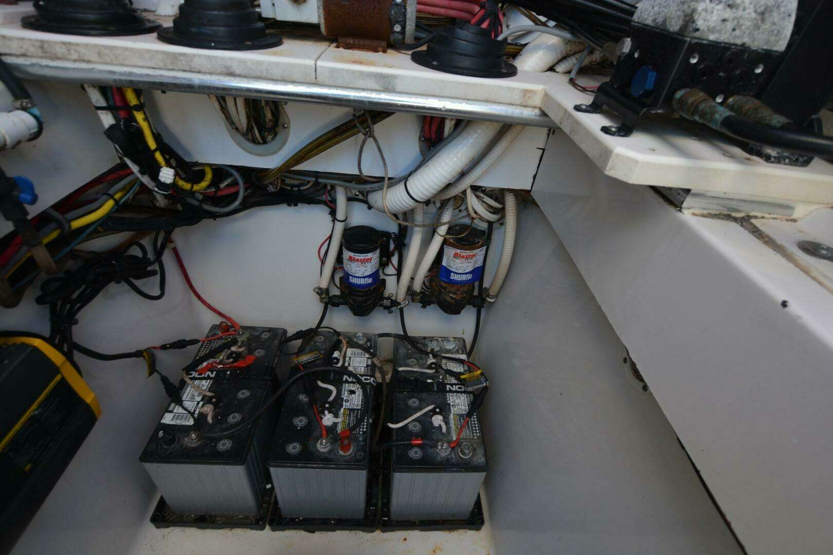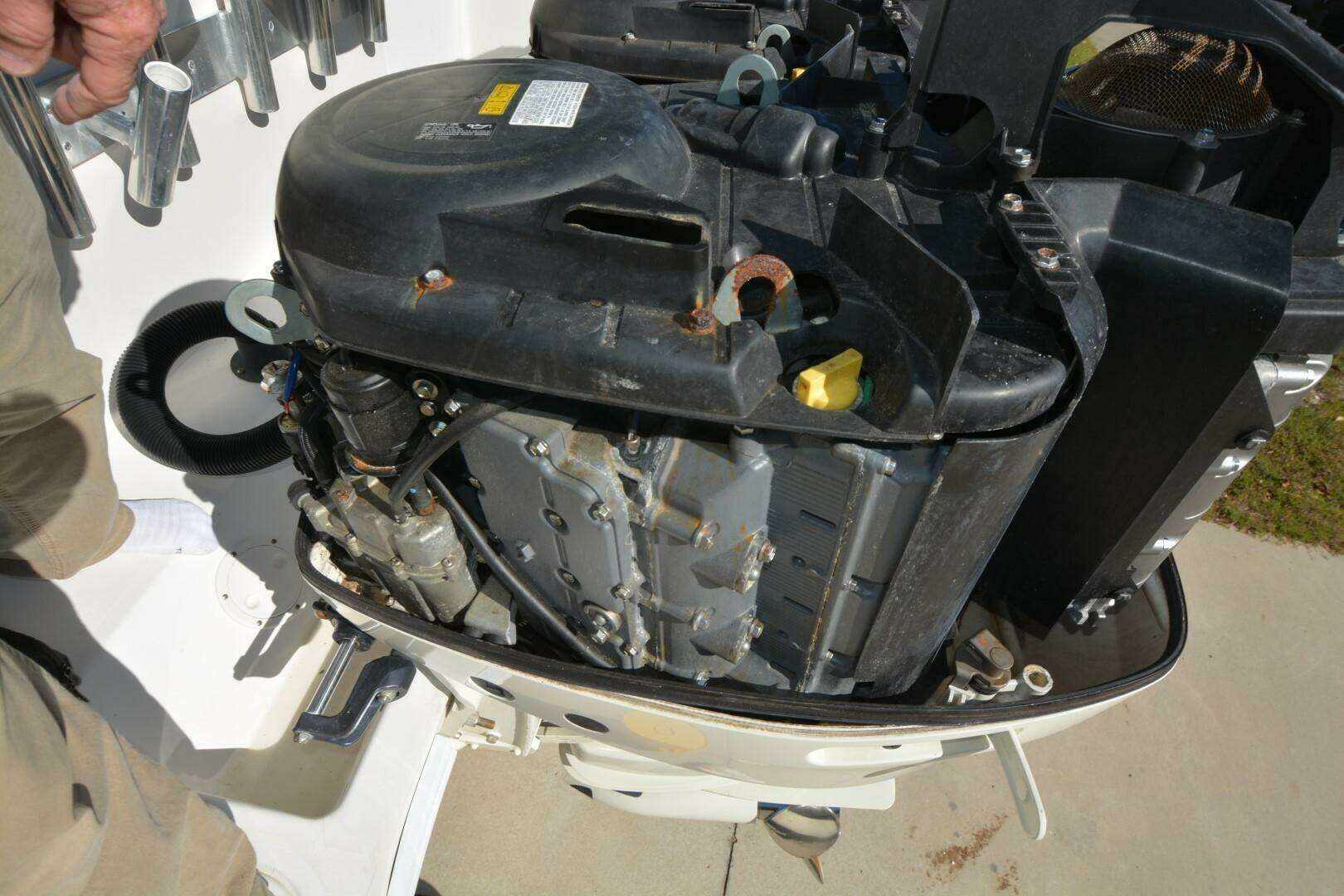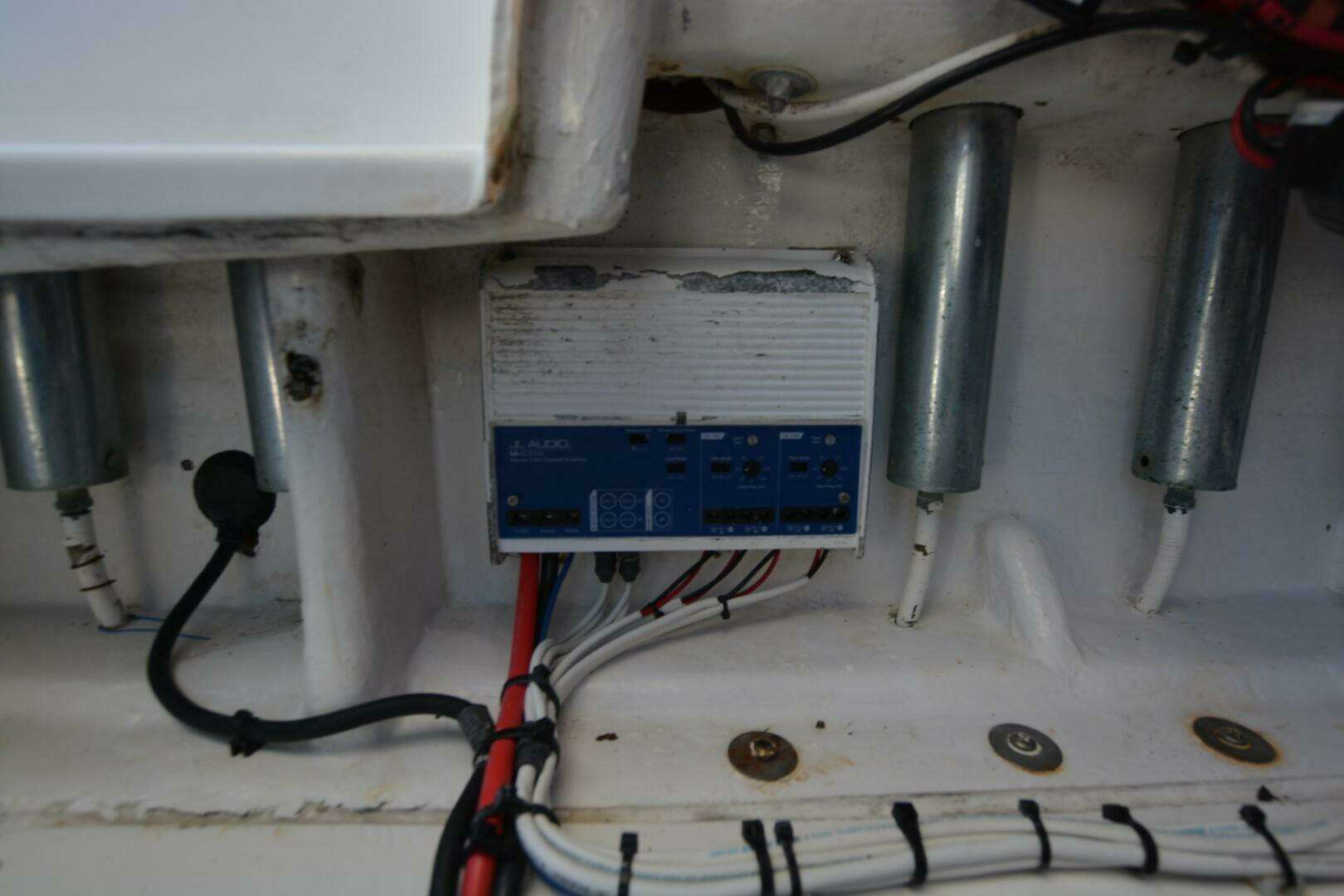 One of Contenders true battle wagons. This is a nice example of a non-stepped hull, triple engine beast. She will cruise at 38 mph, 4100 rpm at 1.37 mpg. She has been upgraded with new Rhodan Trolling Motor, Leaning Post with sliding cooler below and Live Wells in transom, aft deck and forward deck.