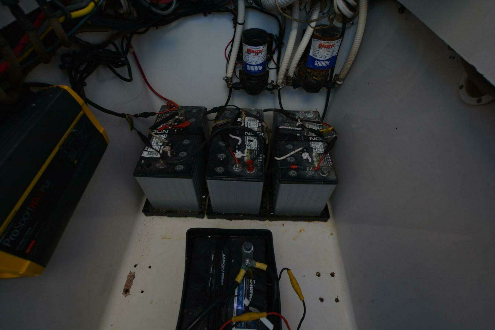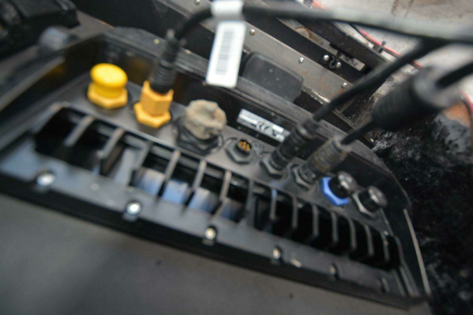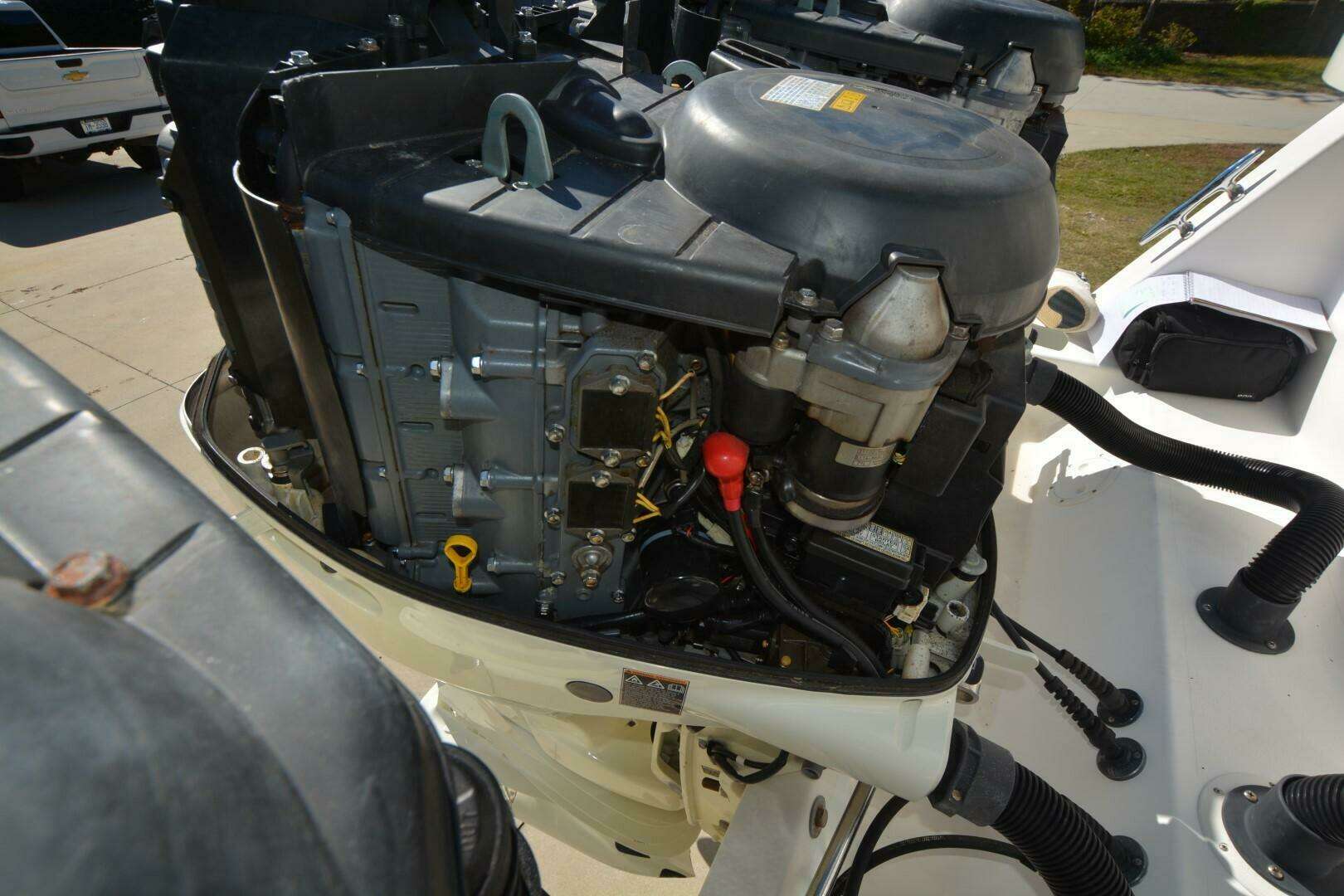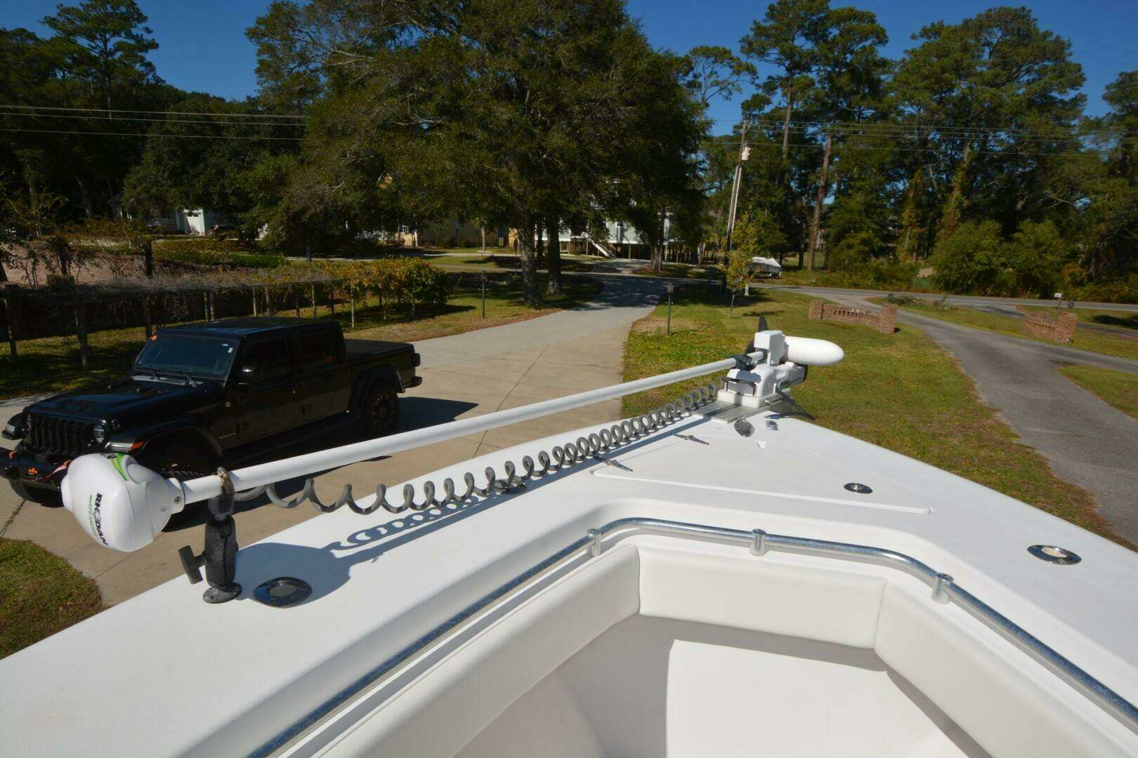 One of Contenders true battle wagons. This is a nice example of a non-stepped hull, triple engine beast. She will cruise at 38 mph, 4100 rpm at 1.37 mpg. She has been upgraded with new Rhodan Trolling Motor, Leaning Post with sliding cooler below and Live Wells in transom, aft deck and forward deck.