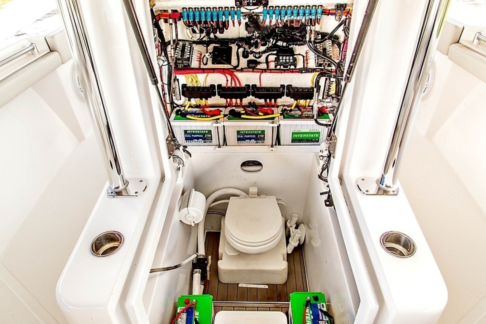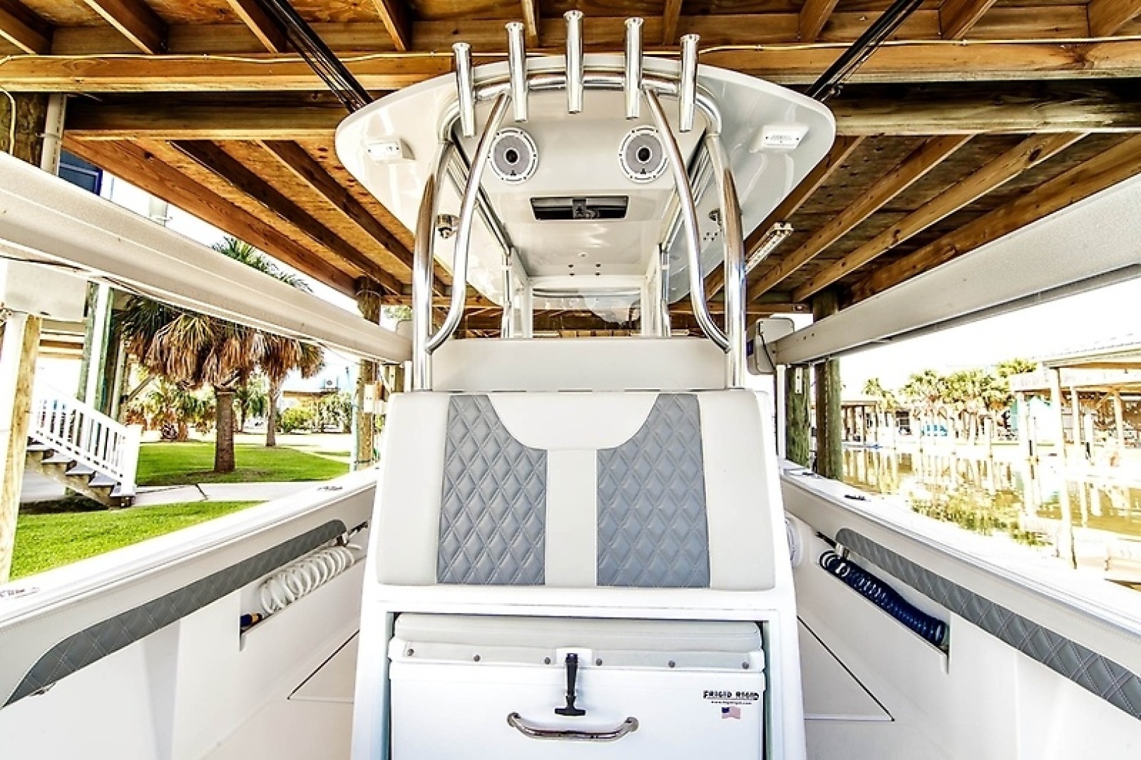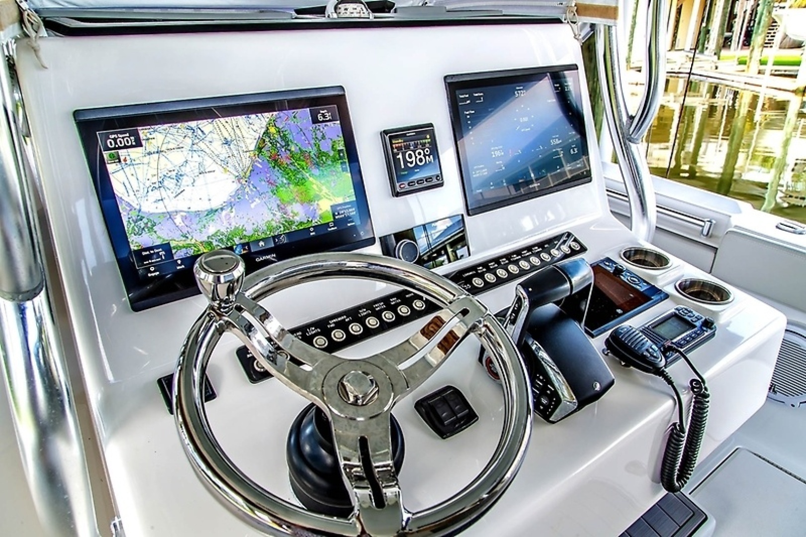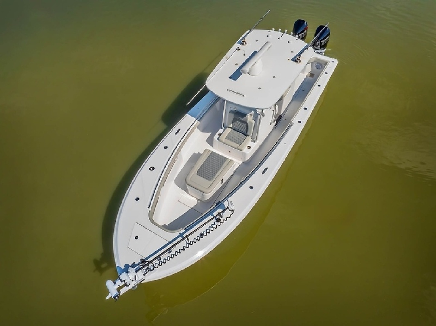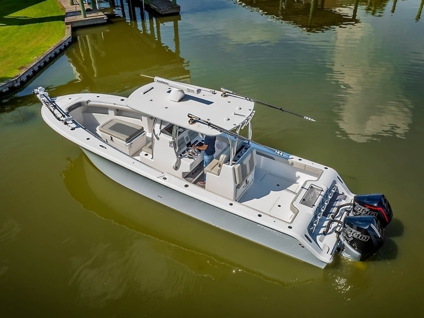 Like her bigger sisters, the 33 Center Console will have the same amazing ride and design just in a smaller footprint. The 33 CC features five macerated in-deck fish boxes, transom seating, dual helm seats, console with head, and available in both twin and triple engine power options. She is not an average low 30’s CC; between her flare, shear, and hull design she will have the attitude and demeanor of a larger boat.
