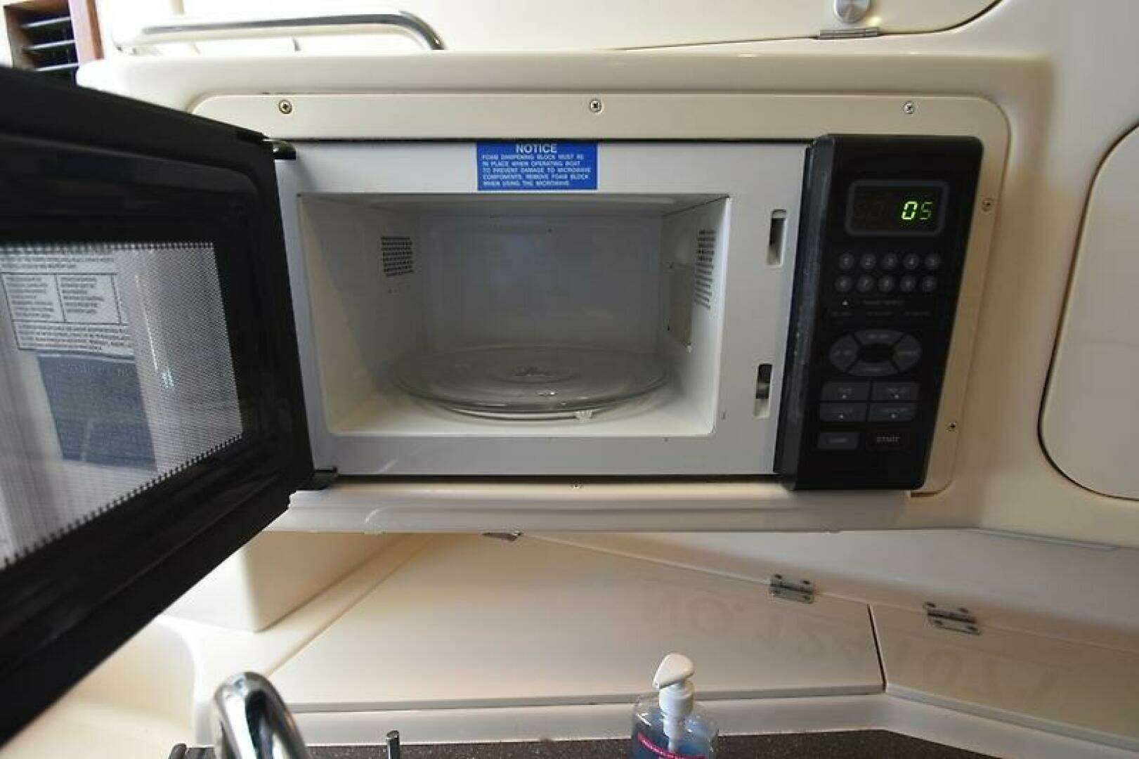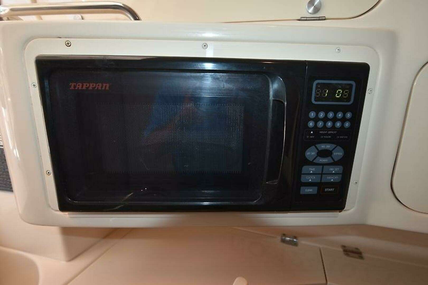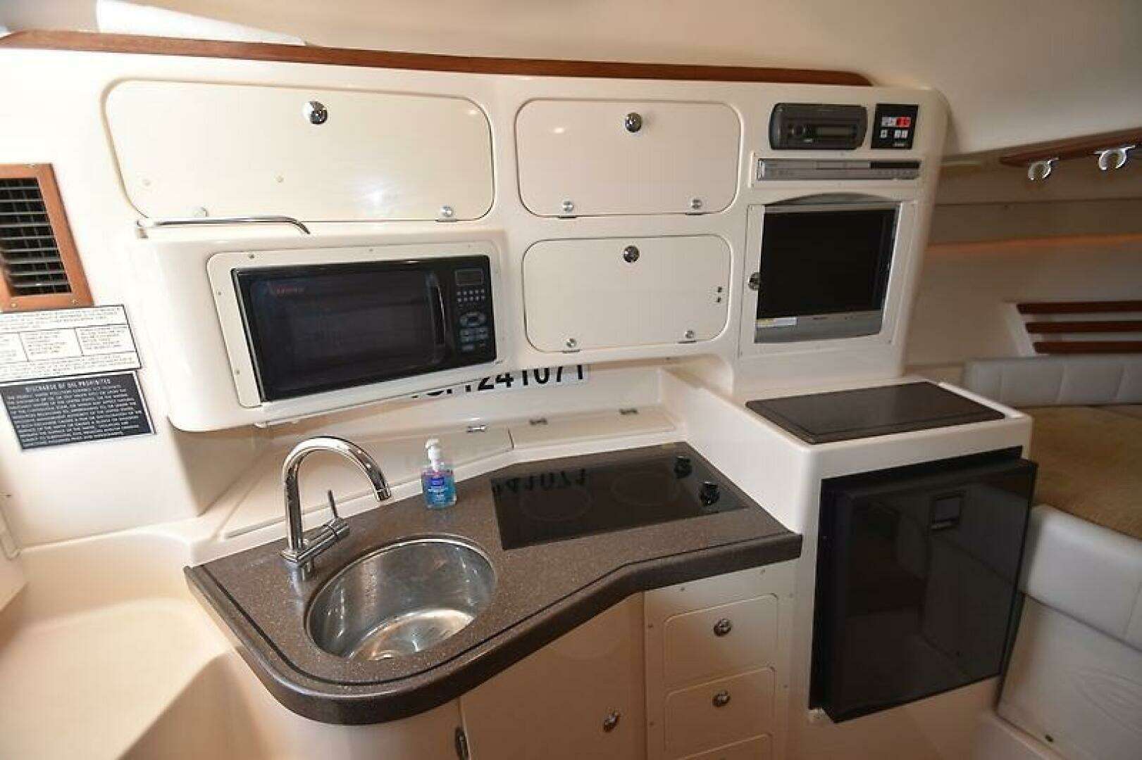 - Stbd side enclosed head and shower (Corian countertop with sink, freshwater sink with pull-out shower head, storage cabinet, medicine cabinet with mirrored doors, Vac-U-Flush toilet, floor drain with shower sump), privacy door with mirror