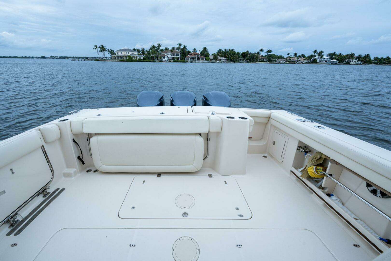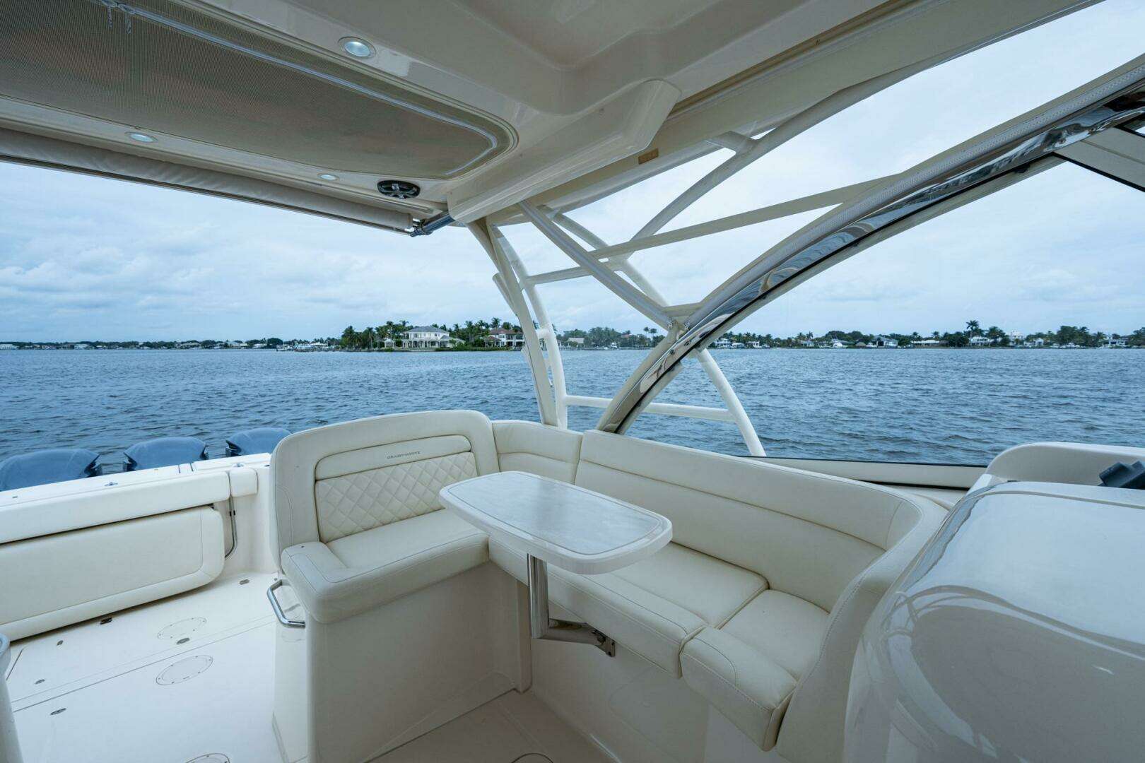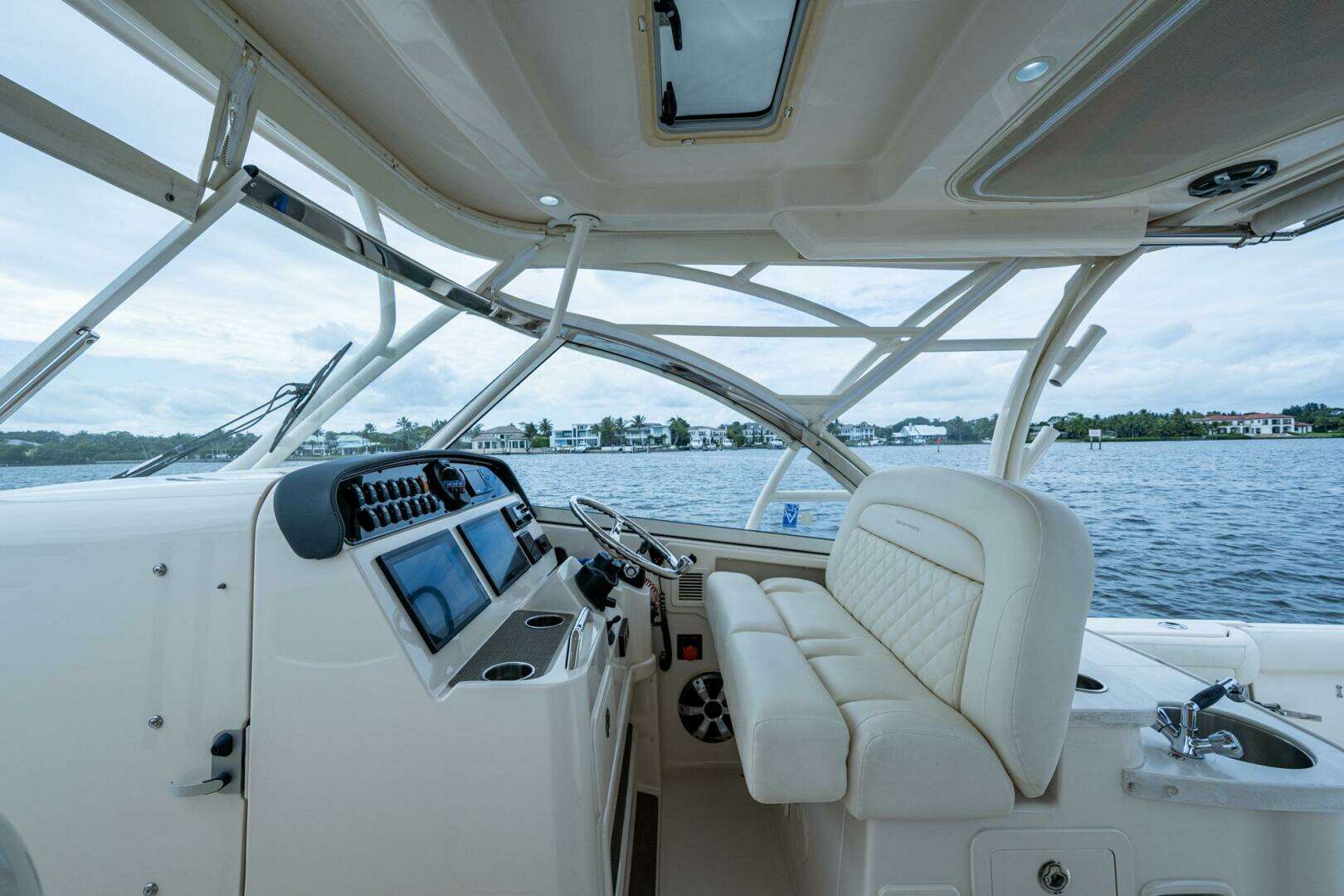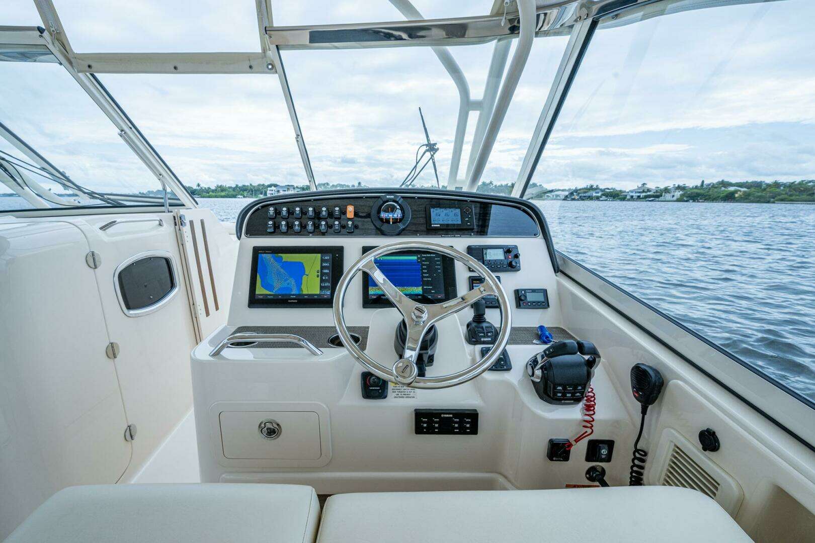 Her preferred triple Yamaha F300's give you the reliability and performance over the Twin 350 engine package. Dual Garmin 12" plotters, autopilot, radar and a fusion stereo with all JL Audio speakers. The vessel is loaded with Helm master controls with joystick steering, retractable sunshade, electric grill in cockpit, generator, air conditioned helm and inside console berth.