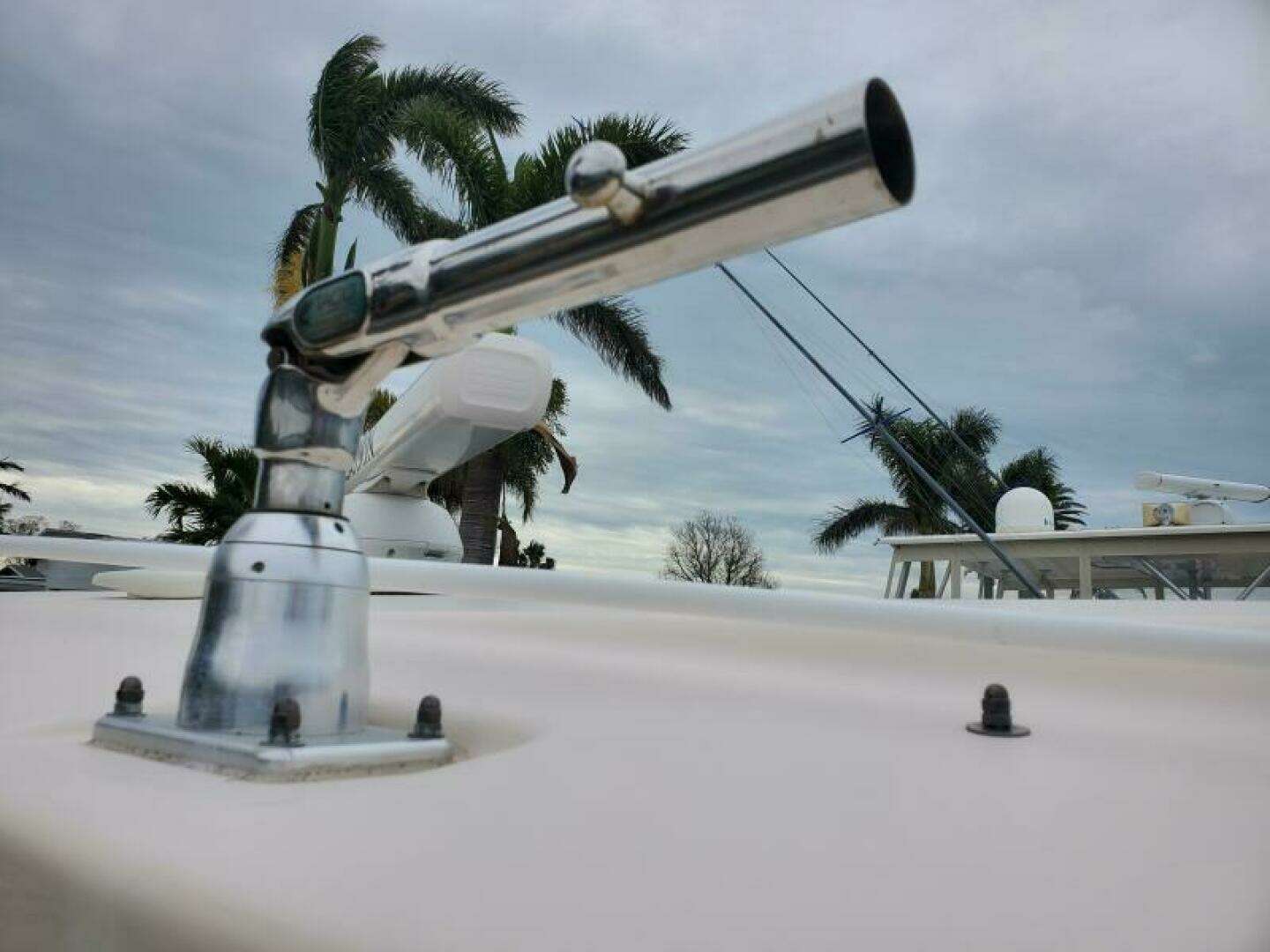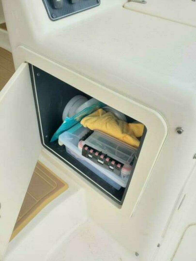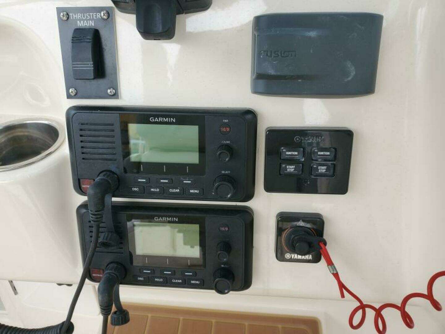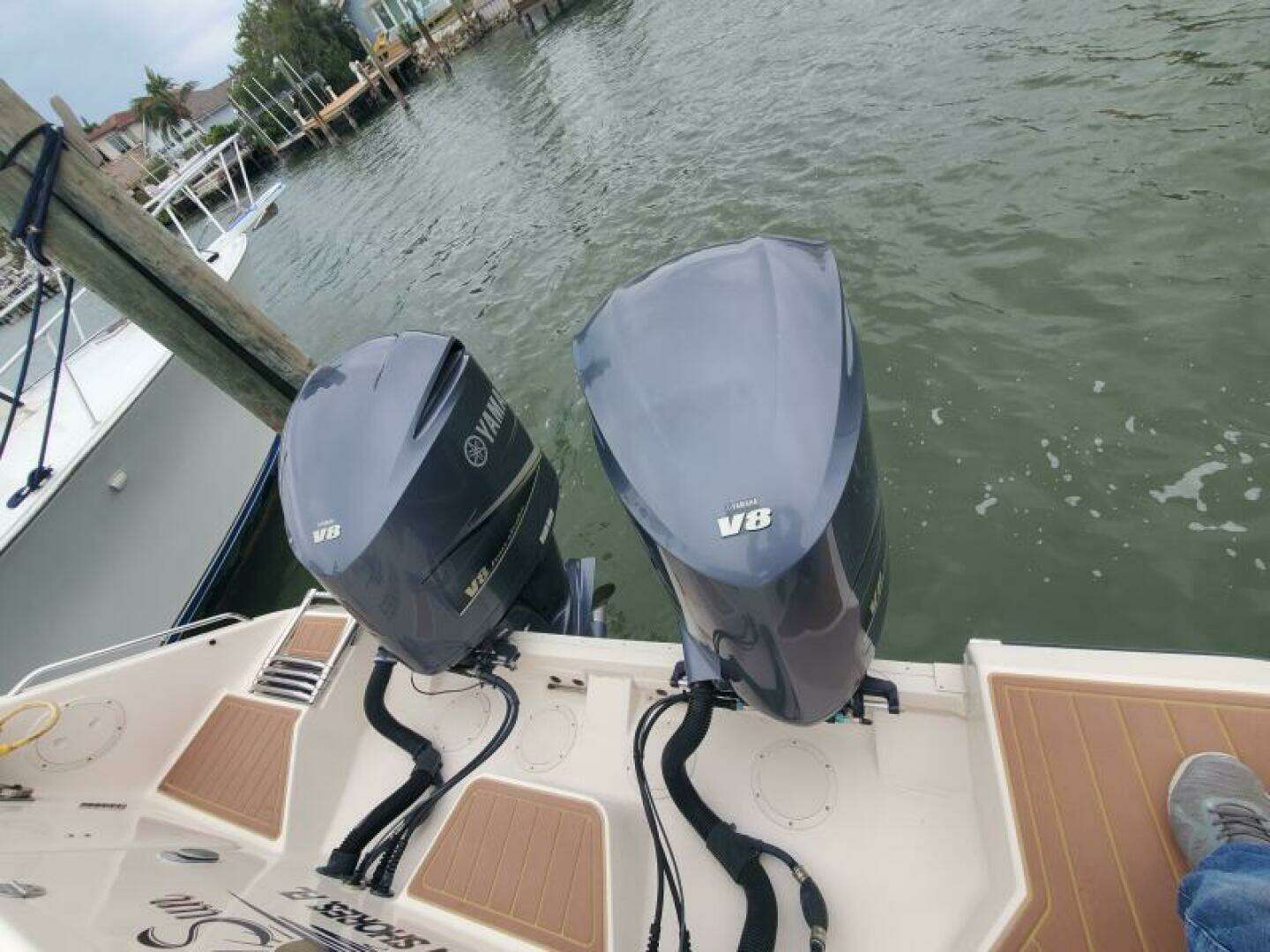Isinglass cockpit enclosure with updated zippers and maintenance, side dive door, stainless telescoping swim ladder, fresh and saltwater washdowns, synthetic teak cockpit flooring, 50 AMP shore power, new trim tab system, new hull side paint, pin stripe logos and vent, stainless telescoping aft sun shade etc. Factory flywheel updates have been completed. Recent engine service on 9/25.