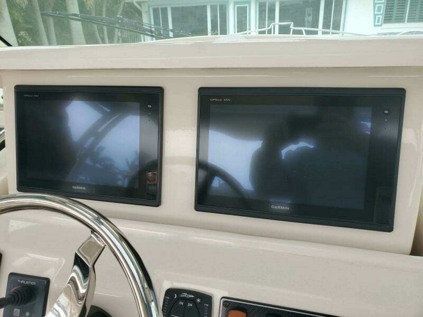 Also comes equipped with a low hour Panda diesel generator, air conditioning, bow thruster, GPS anchor, twin Garmin GPS map XSV touchscreen navigation, open array Garmin radar, Garmin Autopilot, twin Garmin VHF radios, windlass, air conditioned helm, 3 refrigerators, flat screen TV, stove, microwave, hot water heater, underwater lights, cockpit sink, refrigerated fish box with freezing capability,