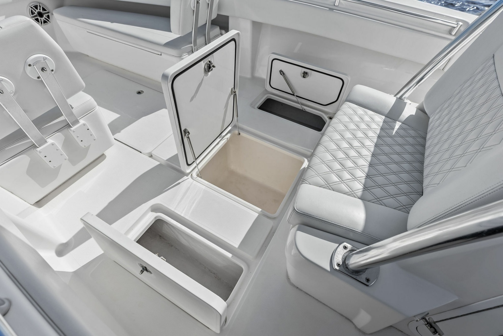 - Hardcore, single-level fishing cockpit designed for serious offshore performance