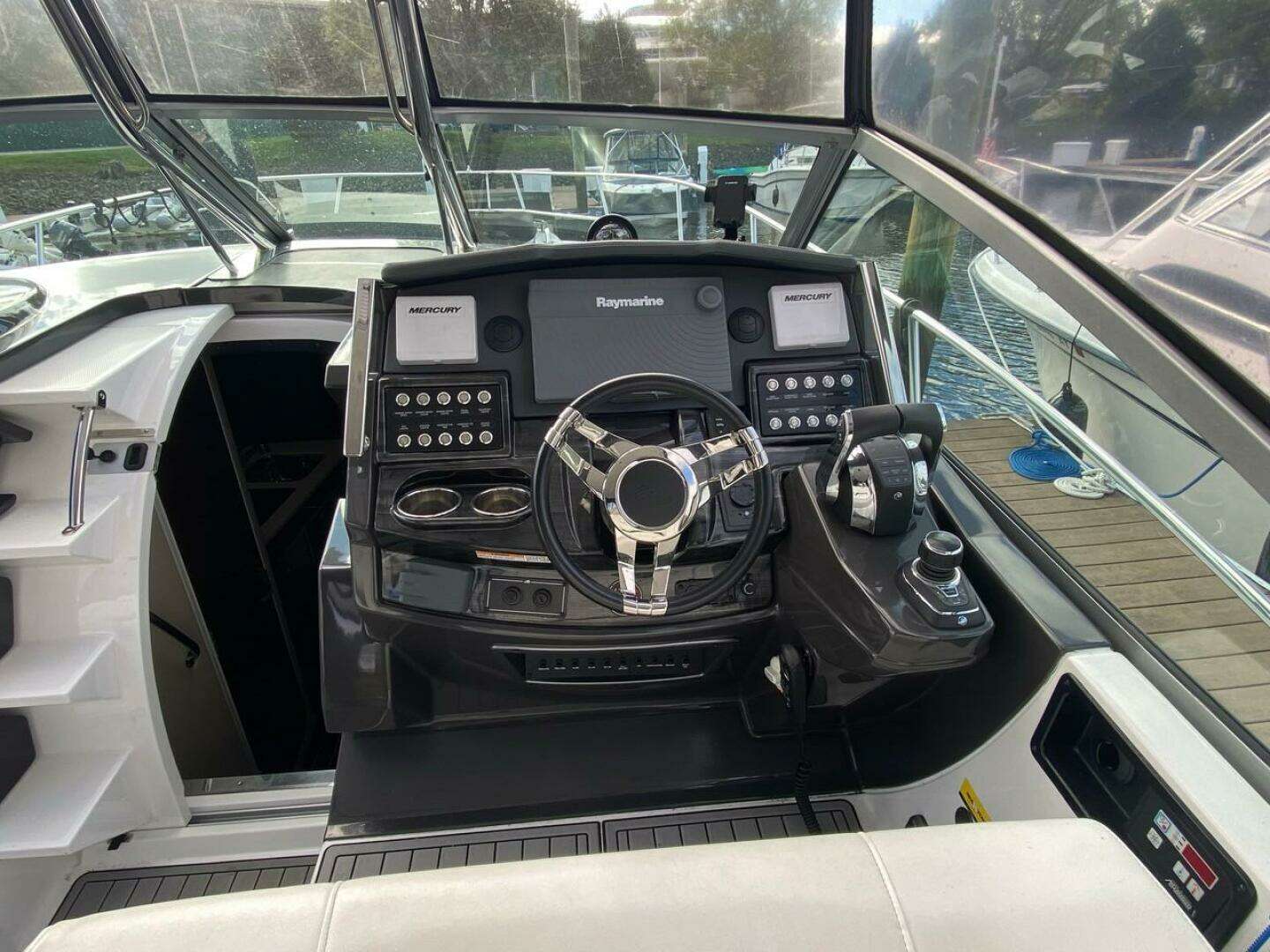 - Modern Helm: Raymarine GPS/Chartplotter, digital engine displays, autopilot capability, and tilt steering for a confident command experience.