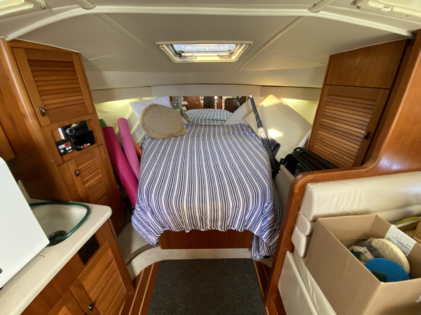 - Two bomar deck hatches with bug and sun screens