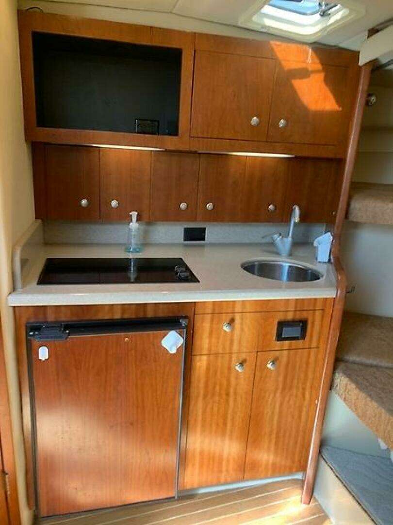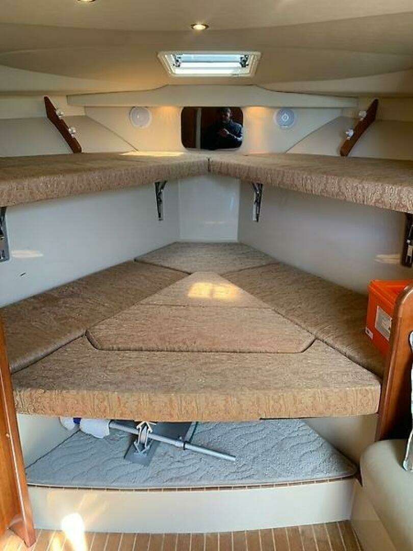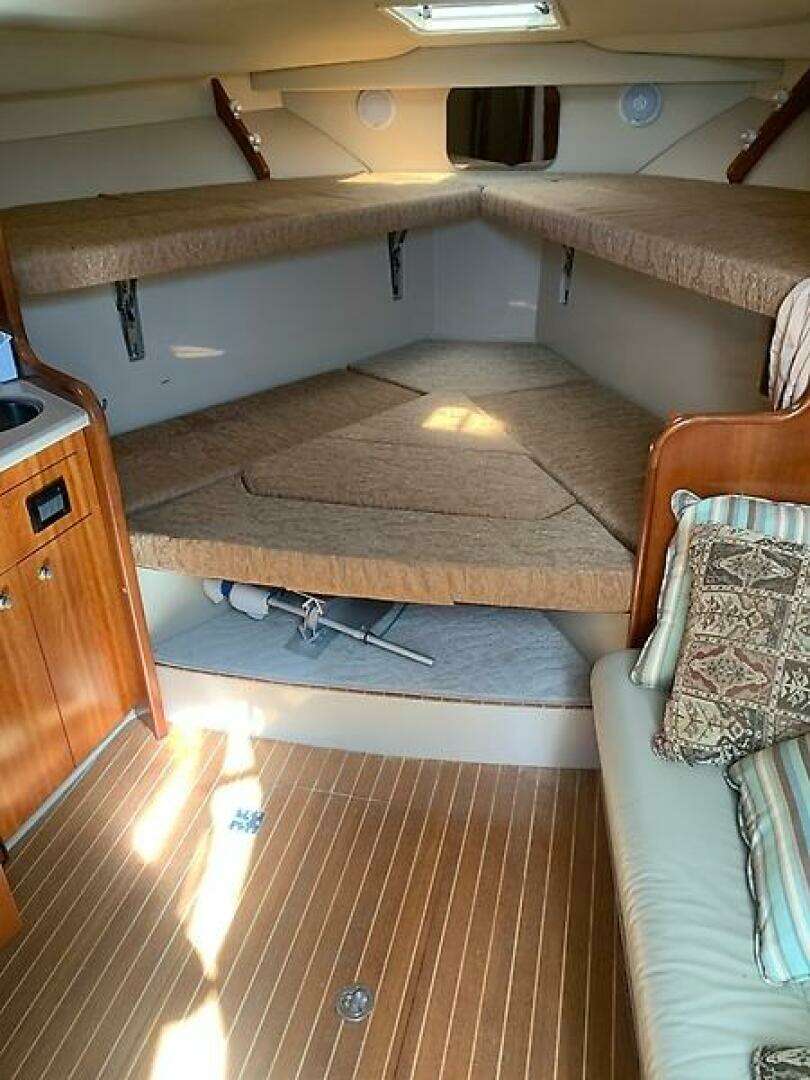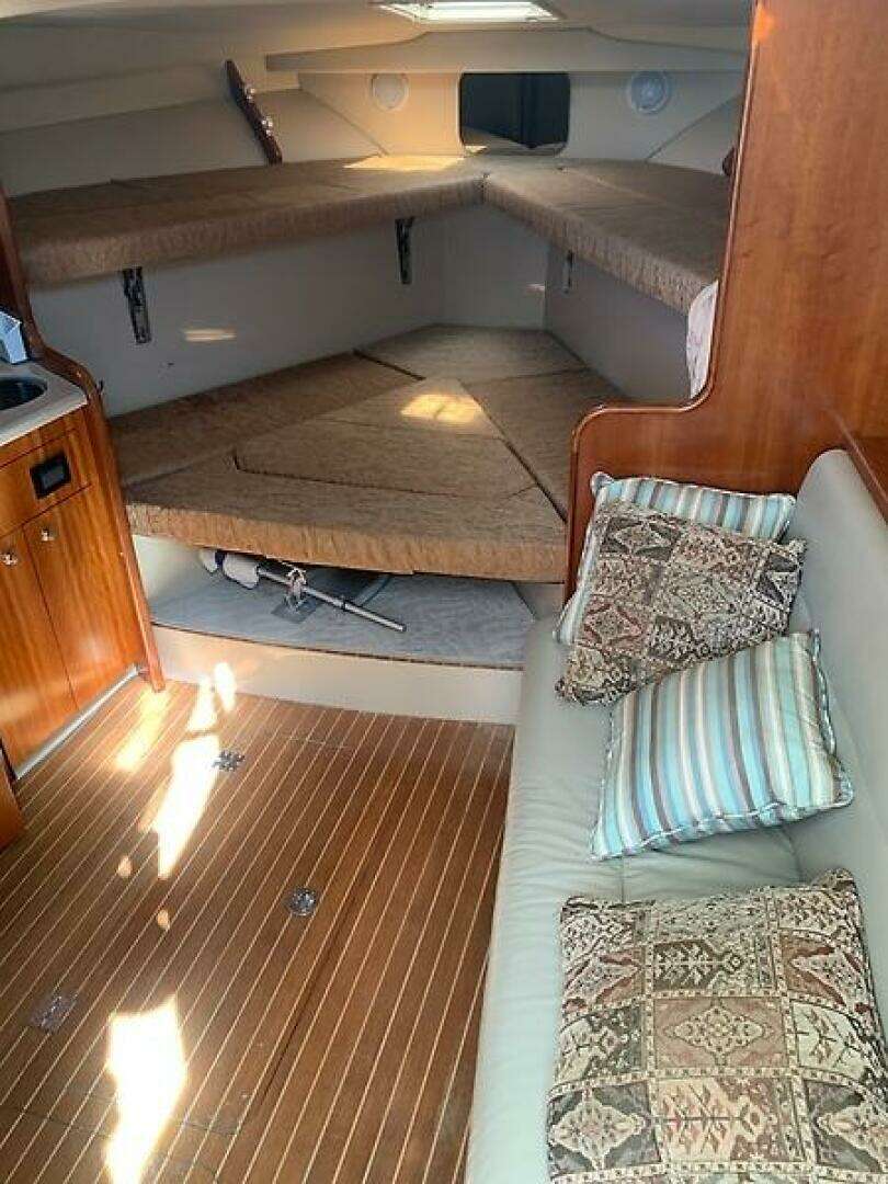 Below deck, you’ll find a well‑appointed cabin complete with a V‑berth, functional galley, and private head—ideal for weekend getaways or overnight trips.