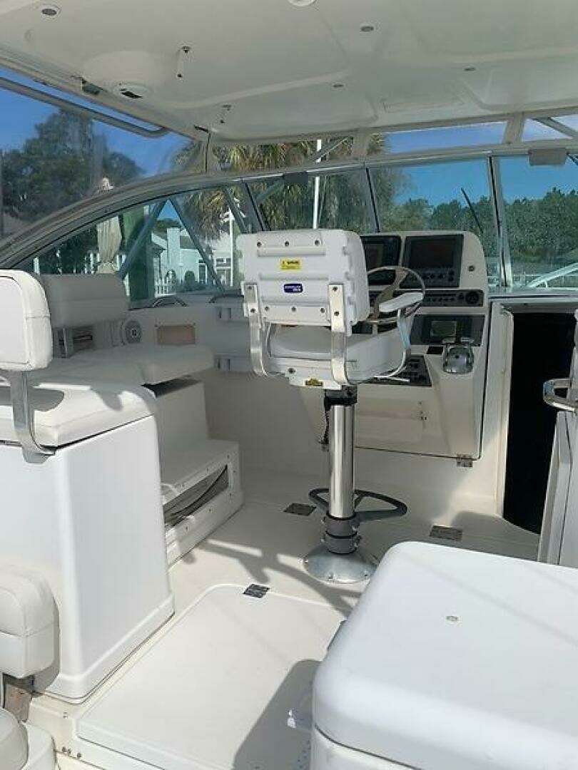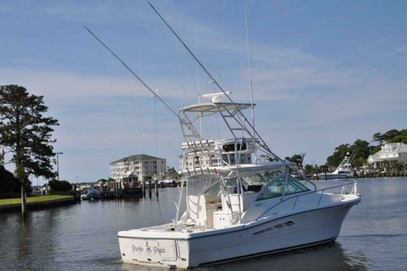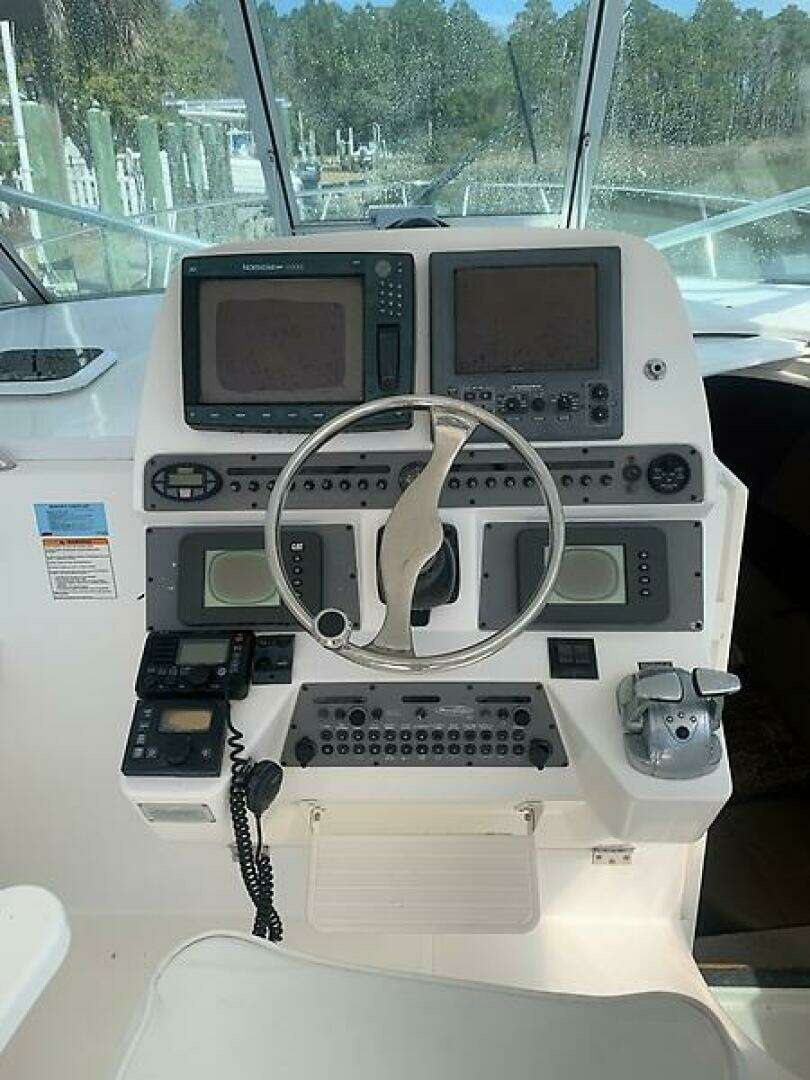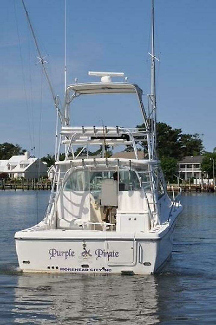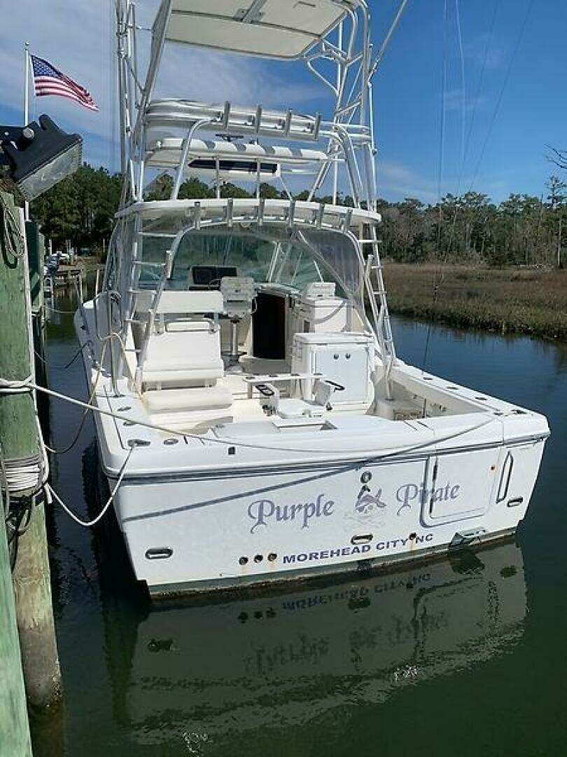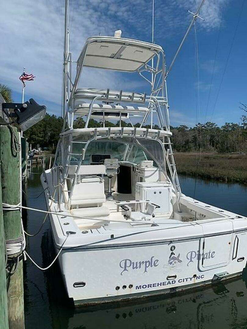 Purple Pirate is a single‑owner 33 Express powered by twin Caterpillar C7 Acert diesel engines with fewer than 1,400 hours. She features a spacious helm deck with comfortable seating for five, along with a generous cockpit designed to accommodate the entire crew with ease.