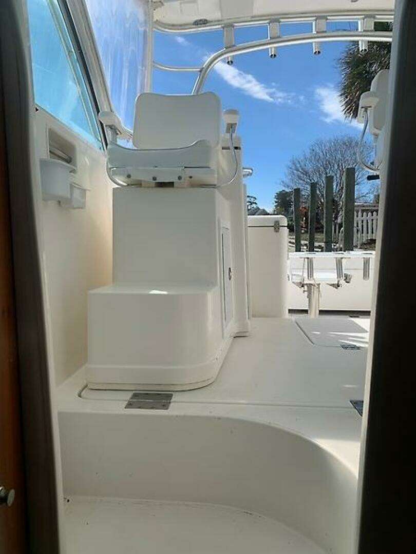 This 33 Express also offers excellent access to the mechanical space through a hydraulic‑assist opening helm deck, plus an oversized in‑deck fish box, transom fish box, transom door, and the optional full tower. Whether you're heading offshore or cruising to your favorite overnight destination, this versatile mid‑sized express is ready for adventure.