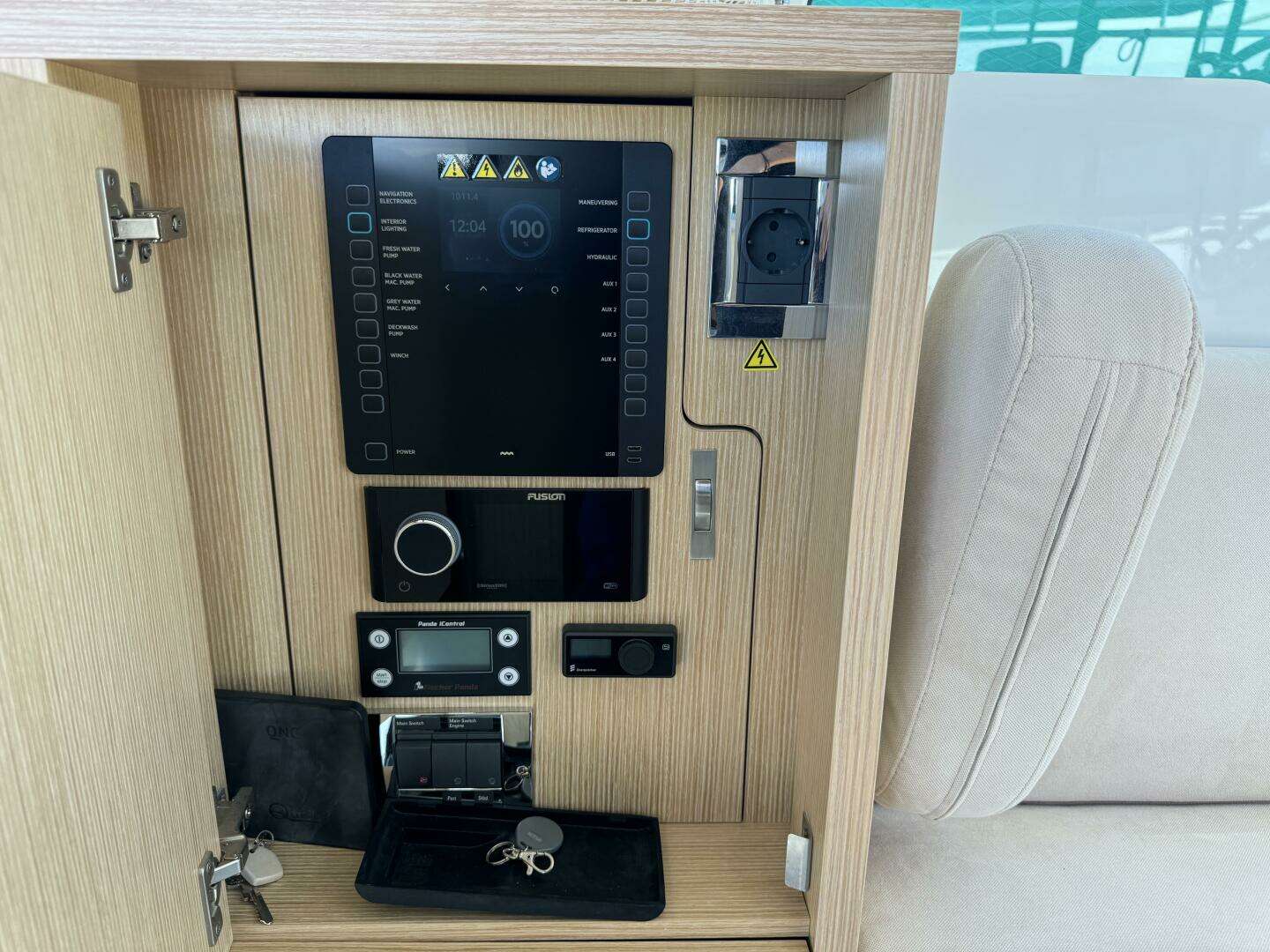 - DC Panel Functions: Navigation Electronics, Interior Lighting, Water Pumps, Macerator, Windlass, Bow Thruster, Refrigerators