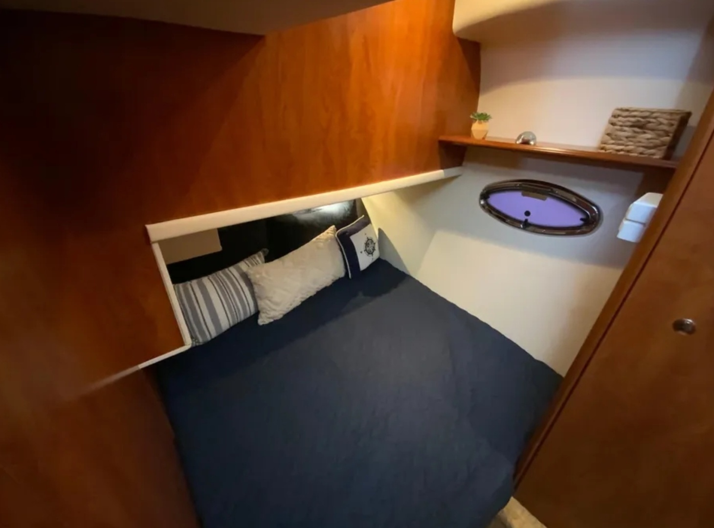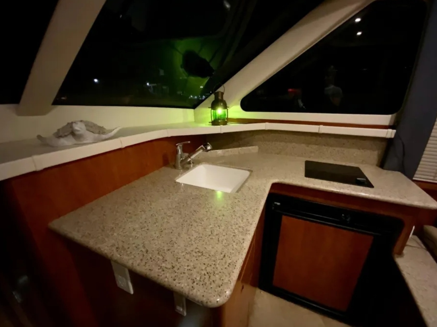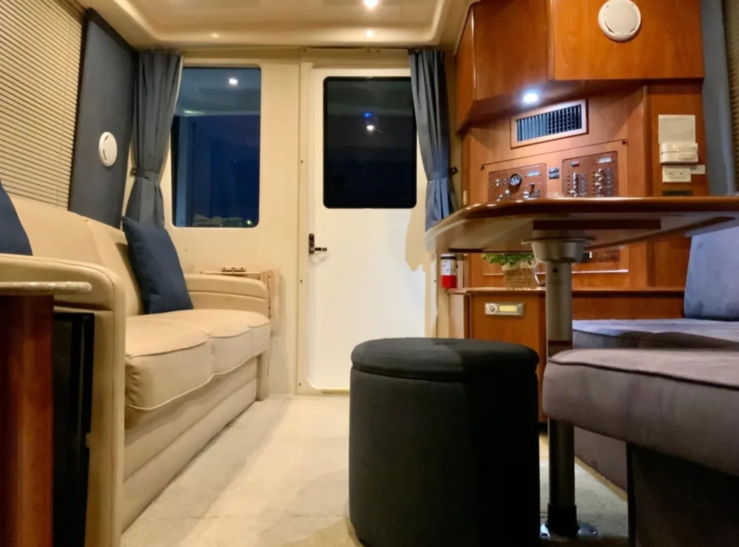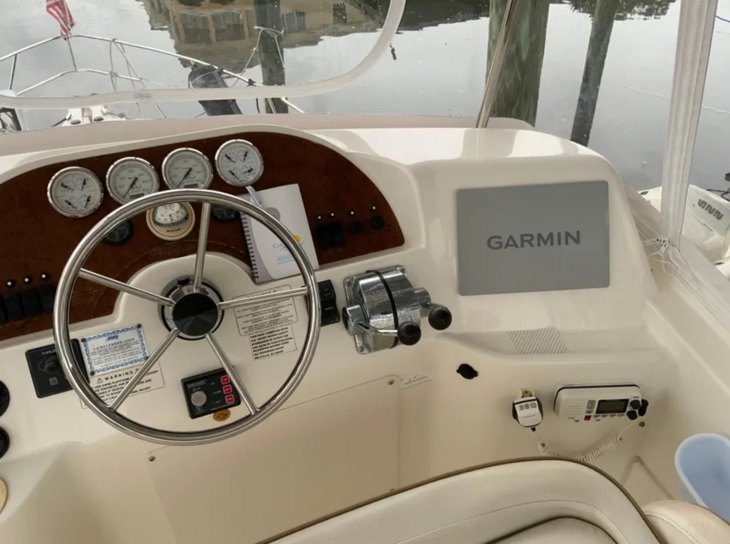 "NICE N' EASY" has been very well cared for by her owner. Remarkably seaworthy, this stylish convertible has the self-assurance of a deepwater yacht, stable and dry in rough seas and tidal rivers. Her performance is robust, her tracking ability, excellent! Captains will enjoy navigating on a flying bridge designed for optimum visibility. She is a 2 stateroom 1 head layout and is optimal for cruising, family fun or even wanting to live aboard.