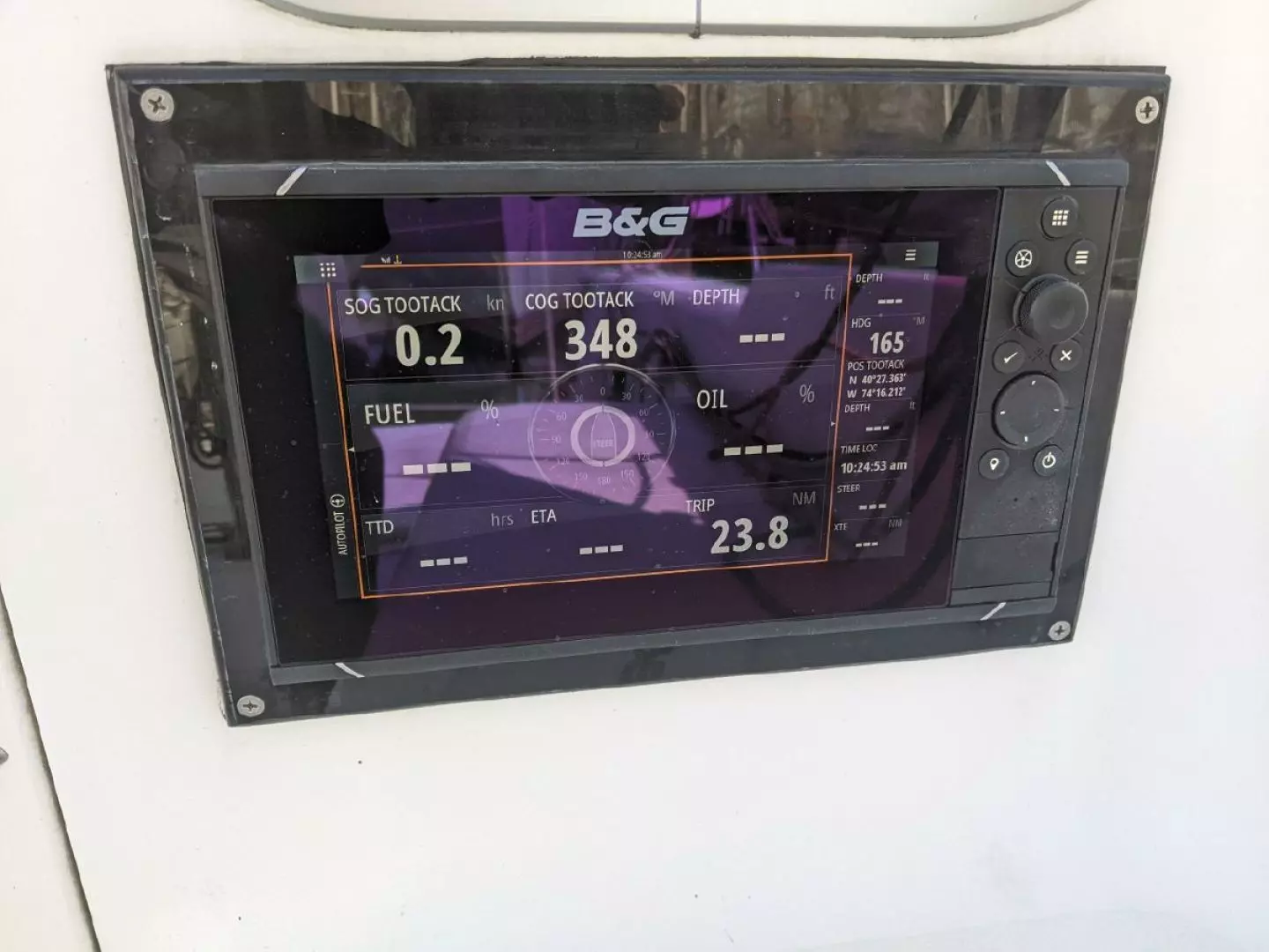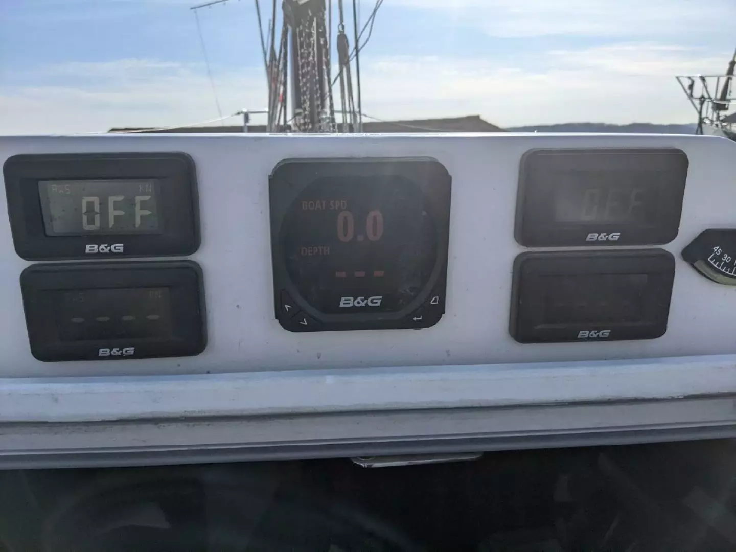 - Knot, depth speed, wind point, speed, angles (5 displays over companionway)
