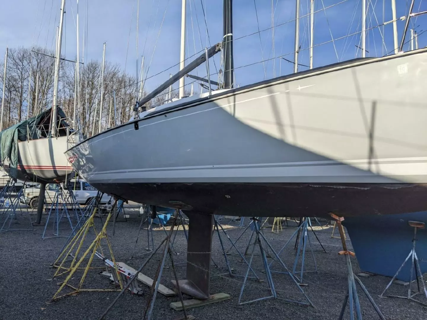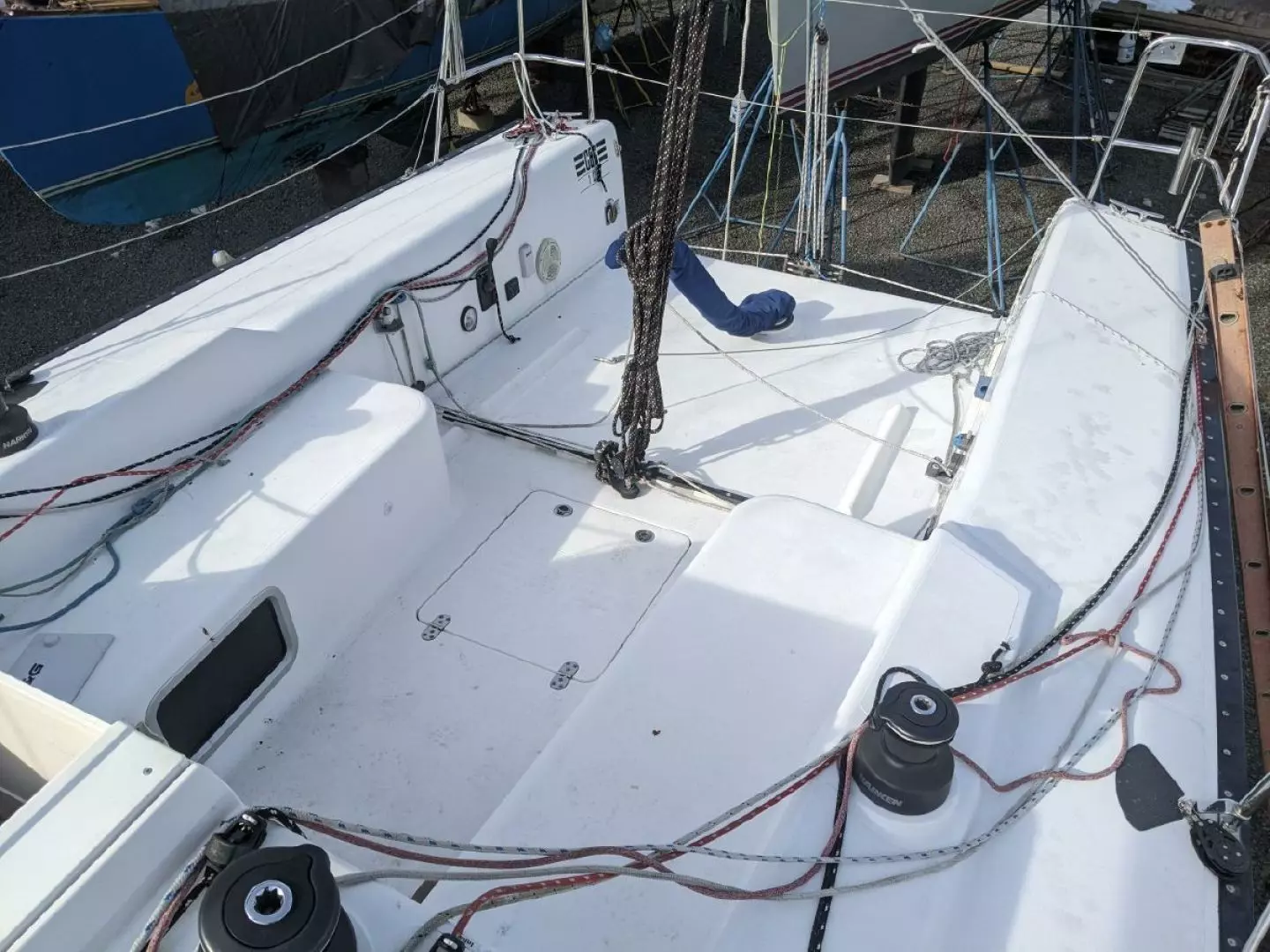 An open transom, towering black carbon fiber mast, black boom, carbon main -this yacht is an attention grabber. New owner, please make room for your new trophies and compliments that can be put to test.