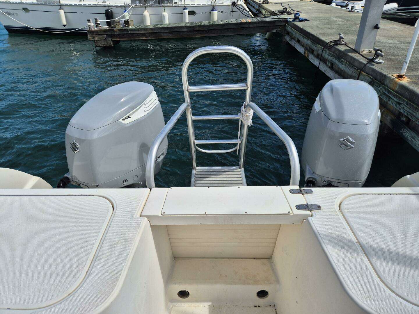- Transom Access: Walk-through door with oversized boarding ladder between engines for easy water entry/exit