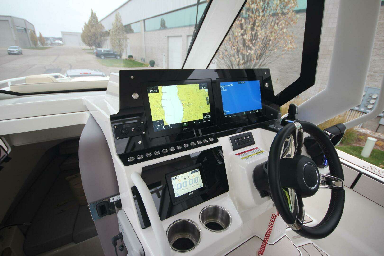 Take advantage of our "Fall Special Pricing with Rebates" and the Yamaha "Fall Into Savings" Sales Event which offers 6 Years of Warranty Protection at no charge on the Twin F350XSA ($8,200 value) plus a $1,000 after tax credit (valid until 12/8/2025). We have three new X10CC's in stock at our Grand Haven, MI and LaSalle, MI locations. We will have one at our Racine, WI location soon. One stock boat has the Mercury V-10 400hp outboards. Both engine packages will hit a top end in the 63-64 mph range. We loaded them with factory options and then added custom helm, helm seat, bow sunpad and twin aft seat canvas covers. We are extremely excited to introduce this new Zodiac X10CC Center Console series to the Great Lakes!