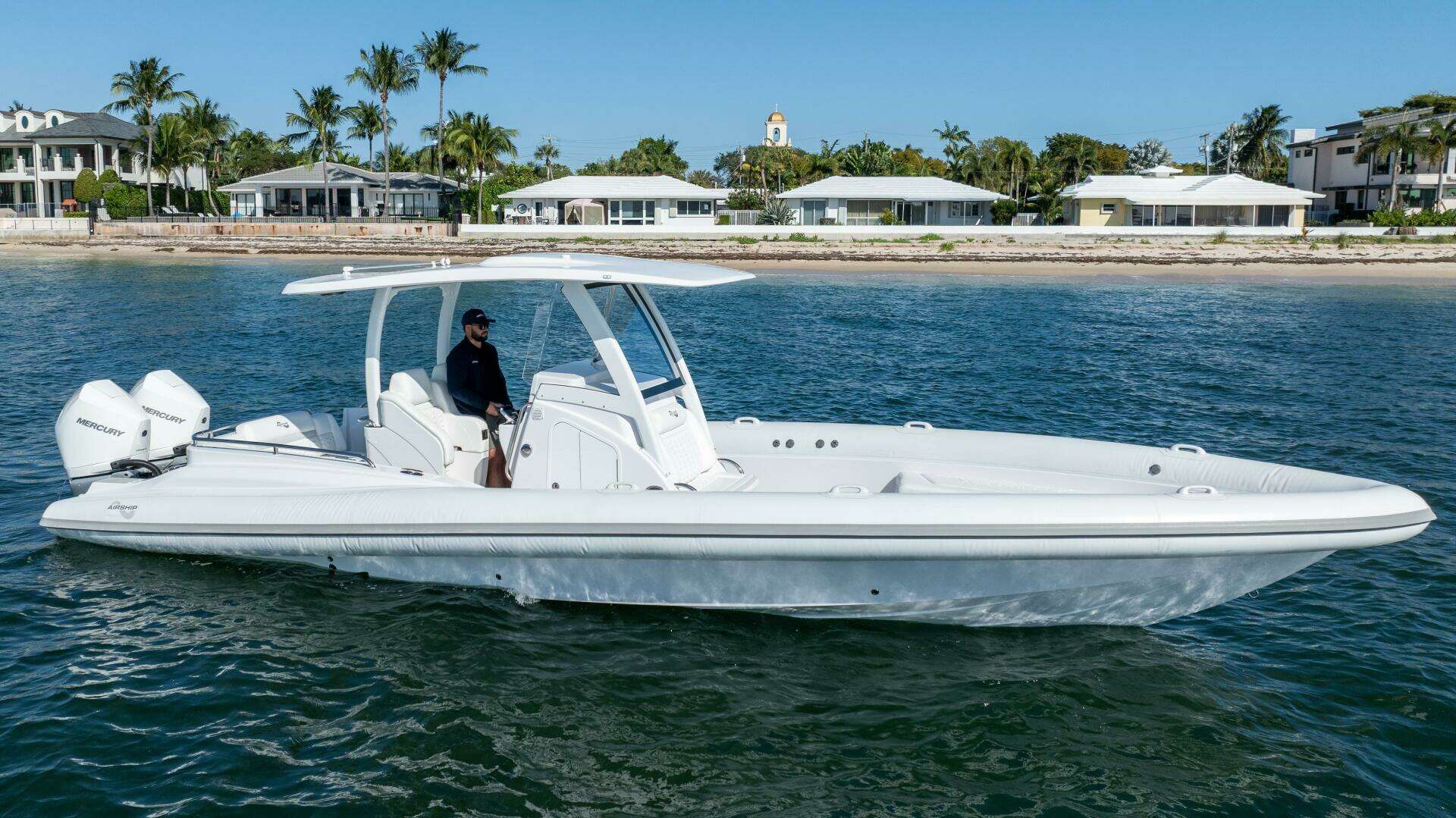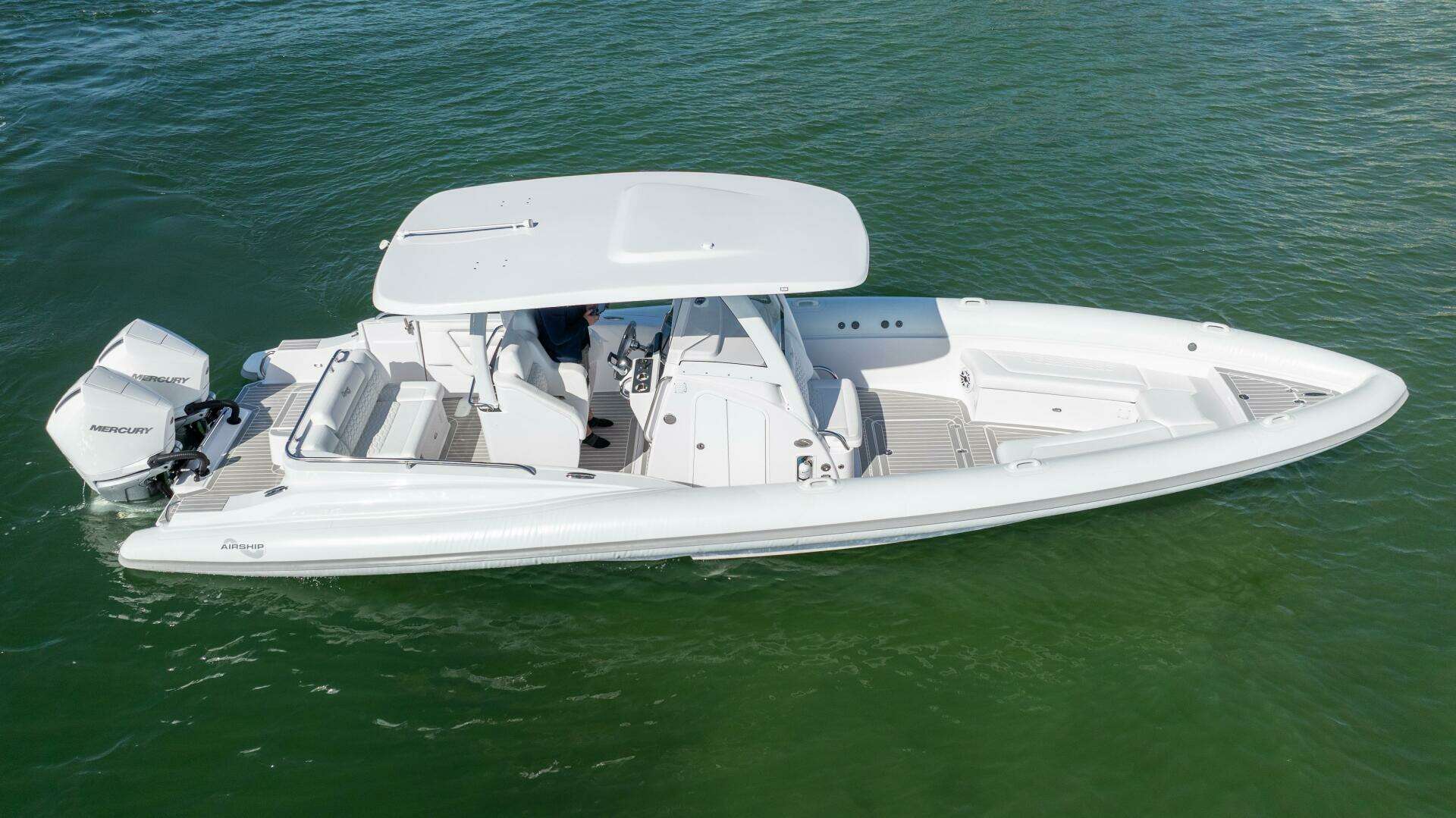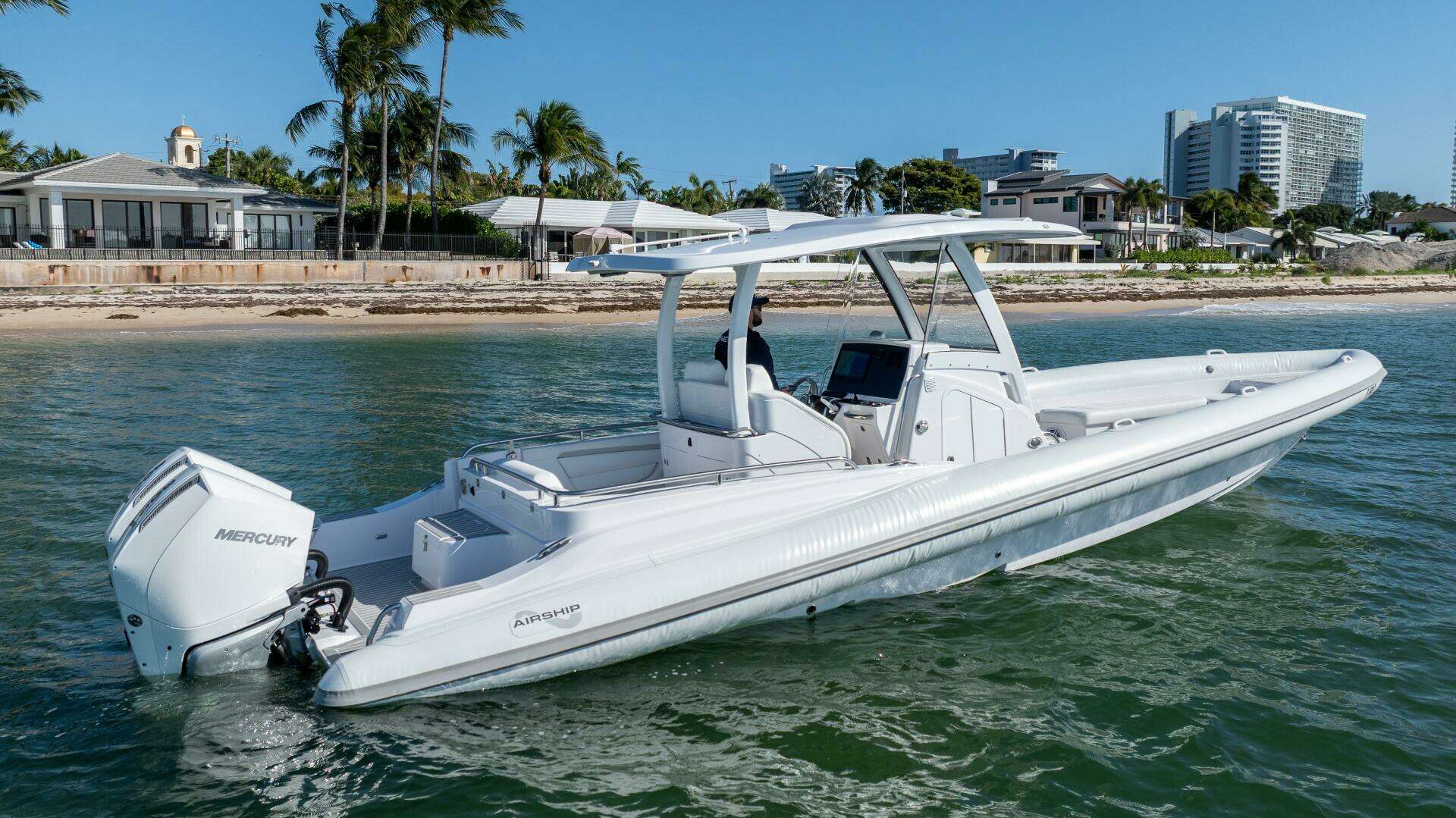 Introducing the remarkable 2025 Airship 340, a Rigid Sports Inflatable that seamlessly combines performance and style. With an impressive overall length of 34 feet, this vessel is designed for exhilarating adventures on the water. The hull, crafted from durable fiberglass, ensures both strength and stability, making it ideal for various marine conditions. Powered by twin Mercury Verado 300 outboard engines, each delivering 300 horsepower, the Airship 340 promises an exhilarating ride with a maximum hull speed of 65 knots. With only 36 hours of use, these engines are in excellent condition, ready to propel you into your next adventure. The boat is equipped with essential features, enhancing your experience on the water. Whether you're cruising or engaging in water sports, the Airship 340 offers a thrilling and reliable performance, making it a fantastic choice for boating enthusiasts. Embrace the open water with this exceptional vessel!