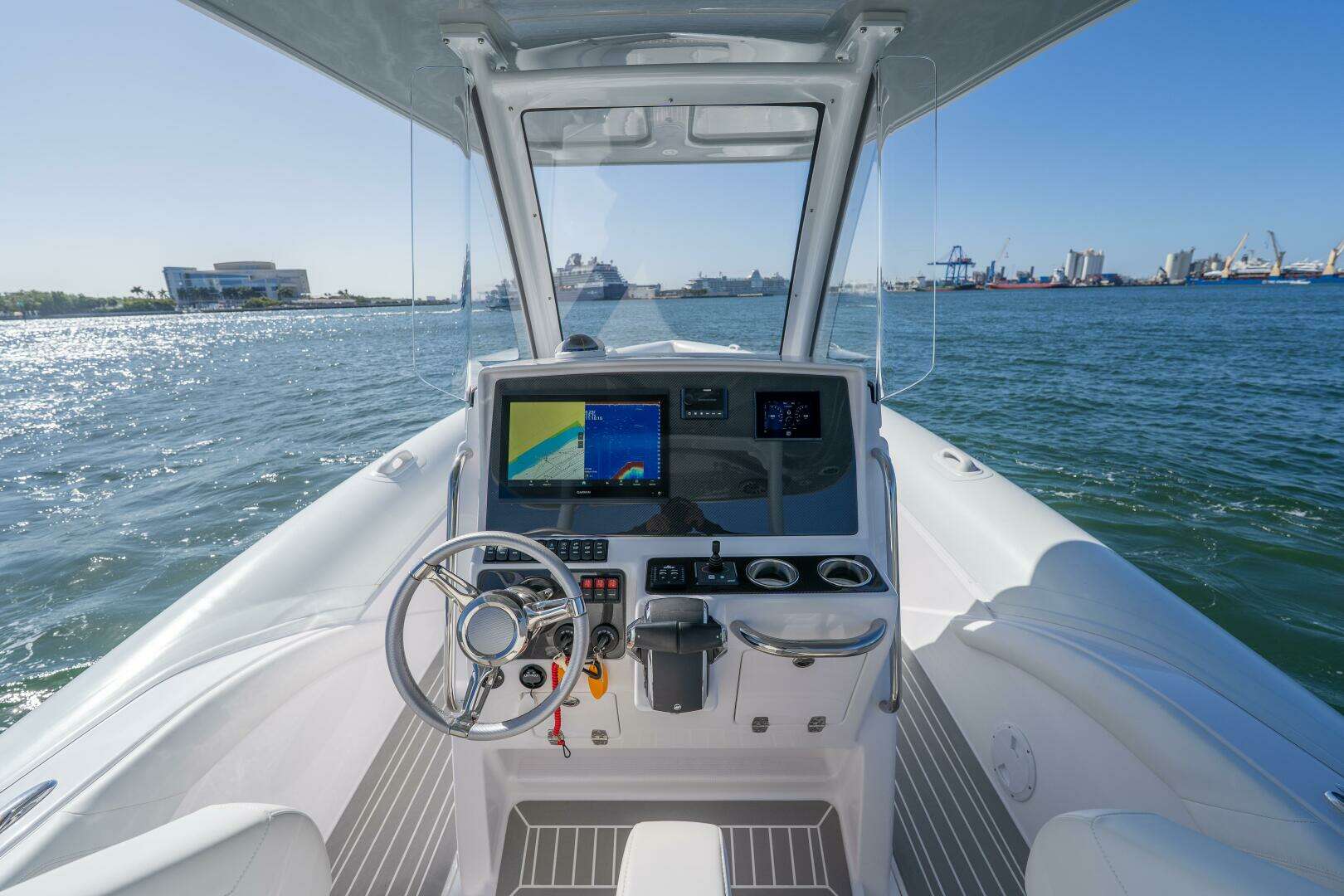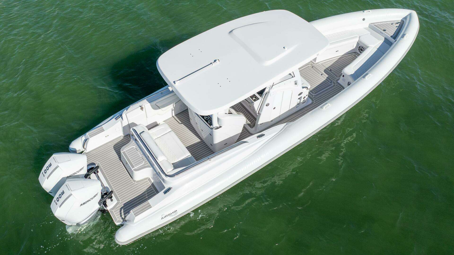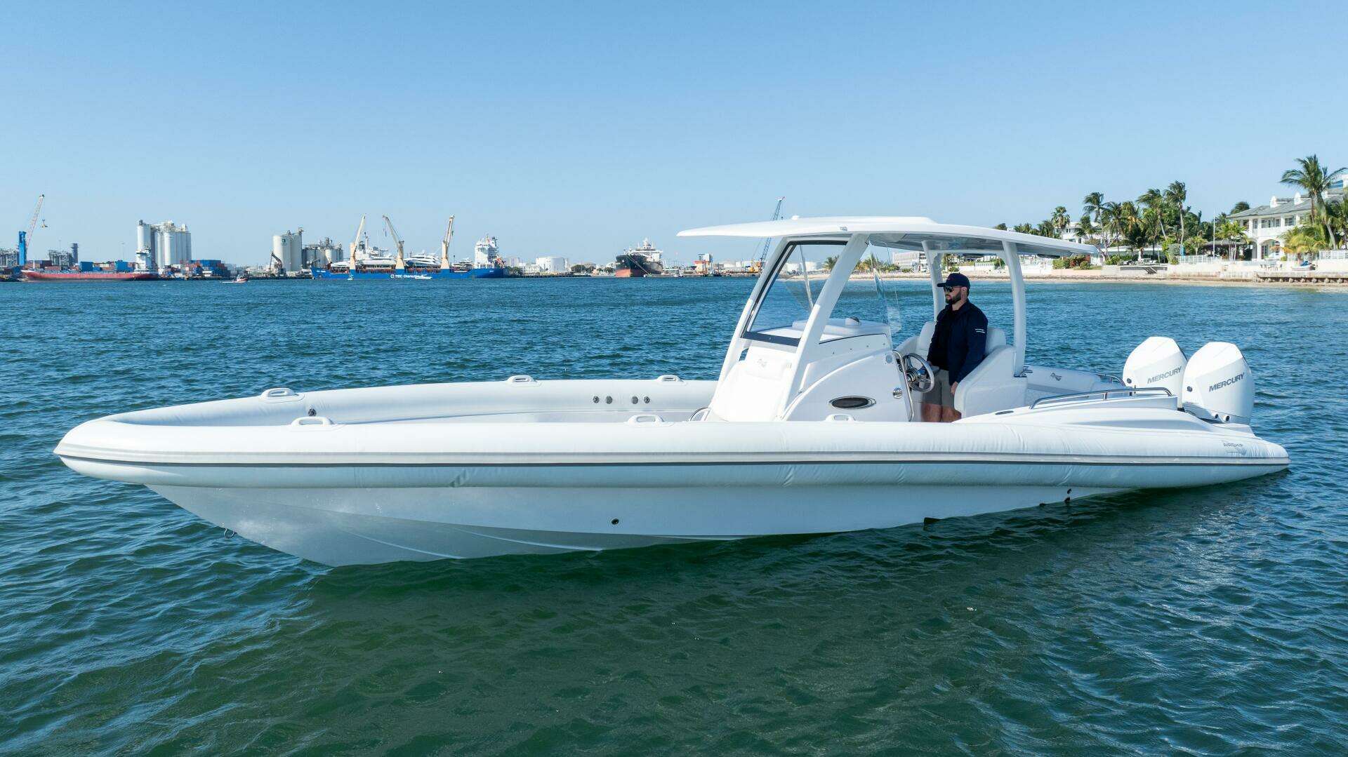 Introducing the remarkable 2025 Airship 340, a Rigid Sports Inflatable that seamlessly combines performance and style. With an impressive overall length of 34 feet, this vessel is designed for exhilarating adventures on the water. The hull, crafted from durable fiberglass, ensures both strength and stability, making it ideal for various marine conditions. Powered by twin Mercury Verado 300 outboard engines, each delivering 300 horsepower, the Airship 340 promises an exhilarating ride with a maximum hull speed of 65 knots. With only 36 hours of use, these engines are in excellent condition, ready to propel you into your next adventure. The boat is equipped with essential features, enhancing your experience on the water. Whether you're cruising or engaging in water sports, the Airship 340 offers a thrilling and reliable performance, making it a fantastic choice for boating enthusiasts. Embrace the open water with this exceptional vessel!
