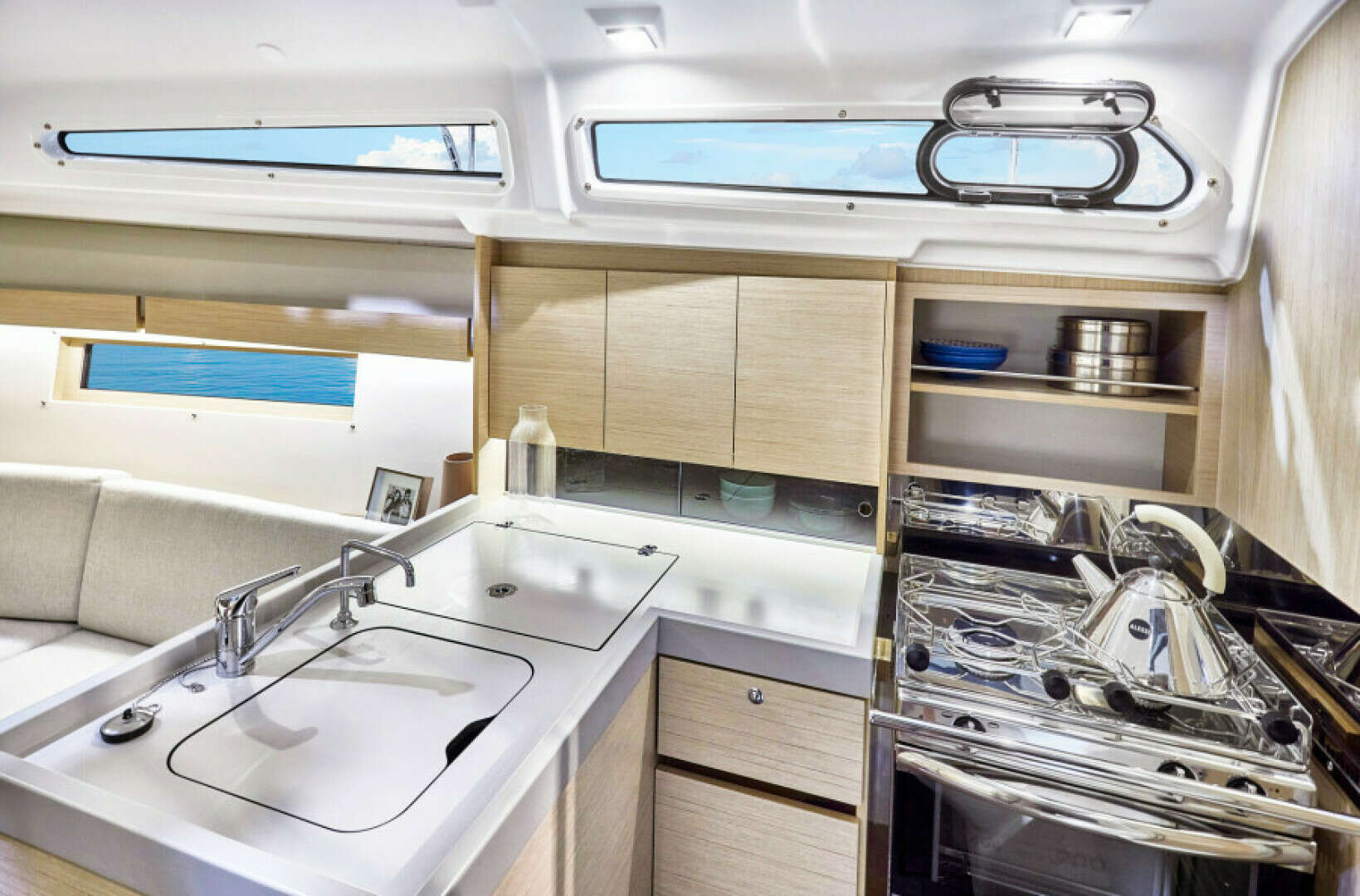 Sleeker, lighter, with more sail area and more volume in the bow for the master cabin than its predecessor, the new Oceanis 34.1 Swing Keel sets a new standard of excellence for sailing yachts in the 35-foot range, a stunning combination of style, spirit, and comfort. From the drawing board of famed naval architect Marc Lombard, she is an embodiment of modern hull design, and the collaboration with Nauta Design for the deck and interior layouts have produced a yacht of such graceful proportions and irreproachable uses of spaces and volumes that it might best be described with one word: perfect.
