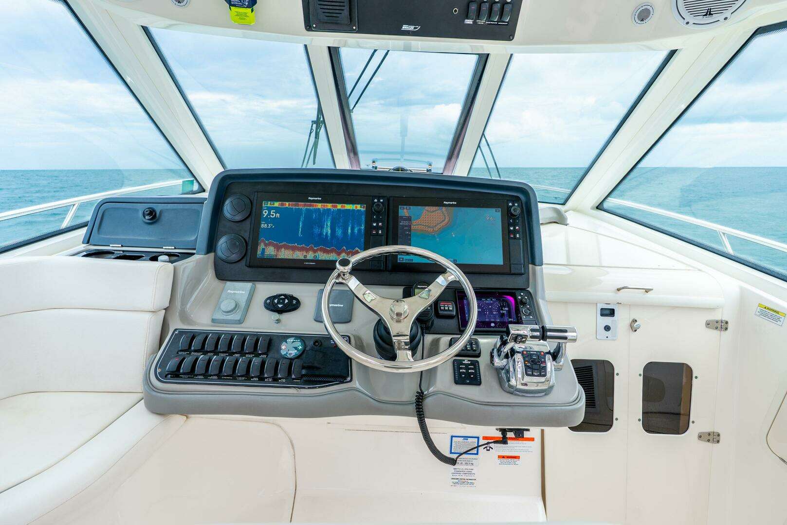 Major 2025 updates include twin 16” Raymarine Axiom Pro MFDs, new Raymarine autopilot pump, fresh bottom paint, hull sides repainted, new cockpit coaming bolsters, and new livewell pump. Add in FLIR night vision, HD open array radar, Brand New Fisher Panda diesel generator, bow thruster, dual air conditioning (cabin & helm), Taco outriggers, and a fully equipped cabin — and you have one of the best-equipped 345 Conquests on the market.