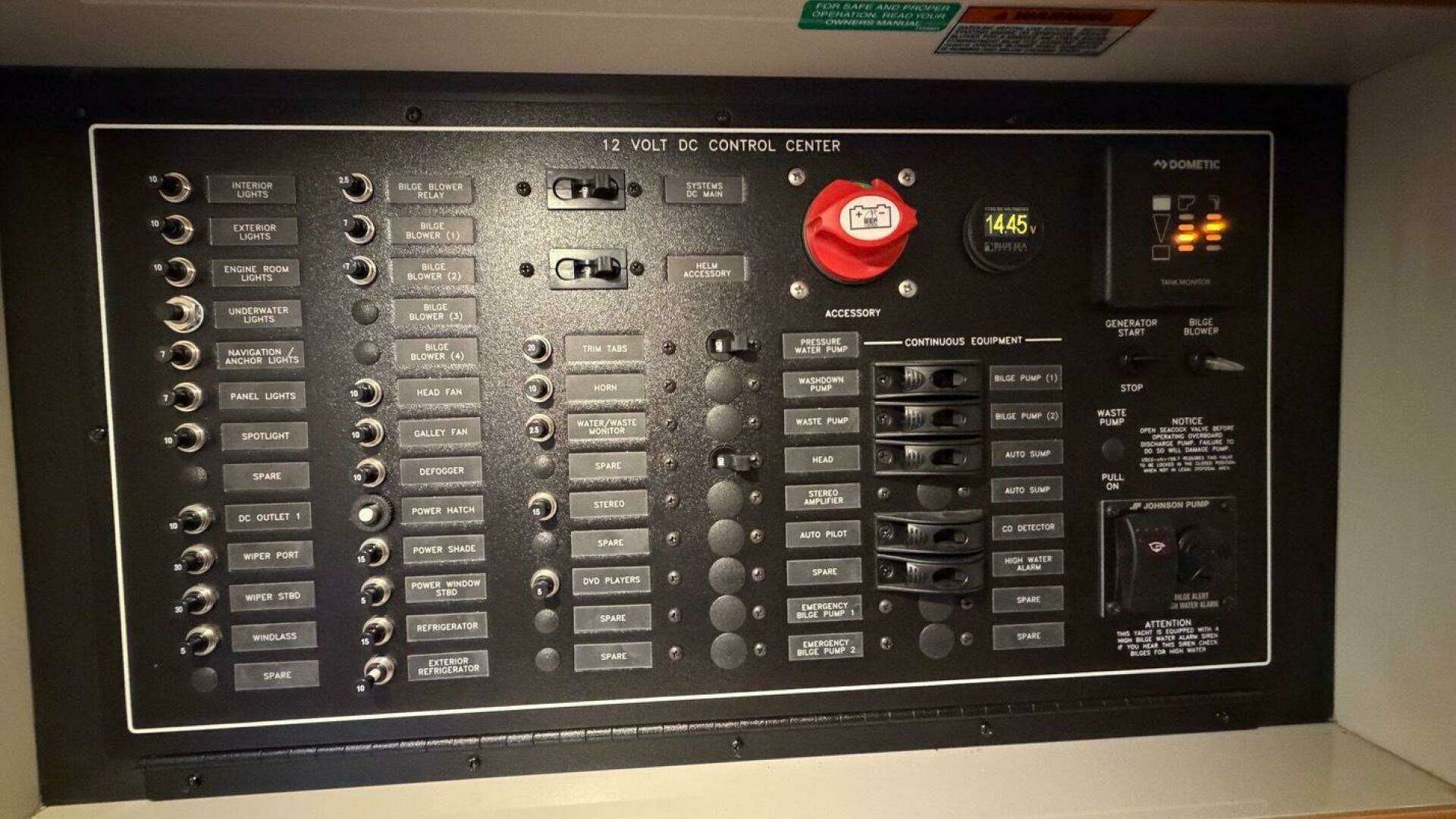 This boat brings together the modern helm technology of a much larger yacht—Skyhook, joystick, digital controls, Garmin glass cockpit—with the ease of ownership of a 34-footer. The condition of the electrical panels and helm shows care, organization, and pride. It’s a boat you can take out tomorrow with zero worry.