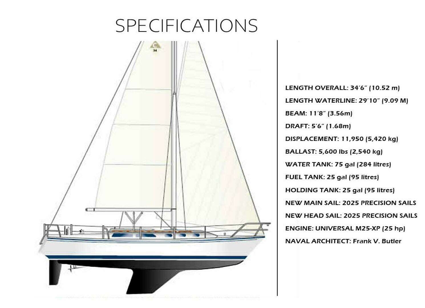 The Catalina 34s are a very easy handling design. The roller furling genoa head sail & the main are NEW last year and by "PRECISION". They have had very little use since instal. The x4- two-speed self-tailing winches make the job of setting sails so easy. The Catalina 34 is known for a quality sailing vessel and they have a good performance rating.