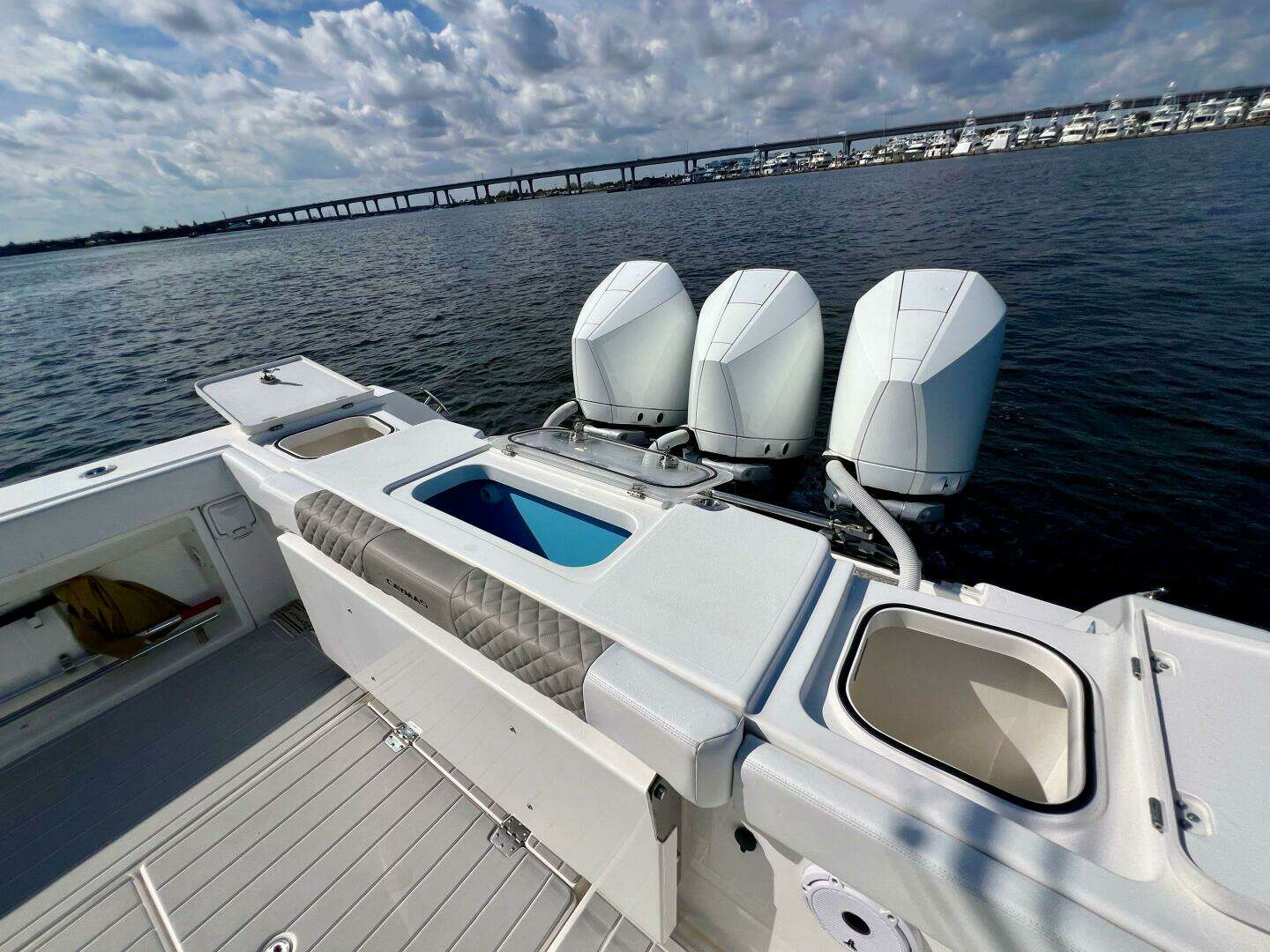 - Insulated transom storage boxes port and starboard