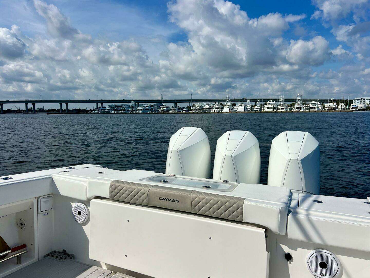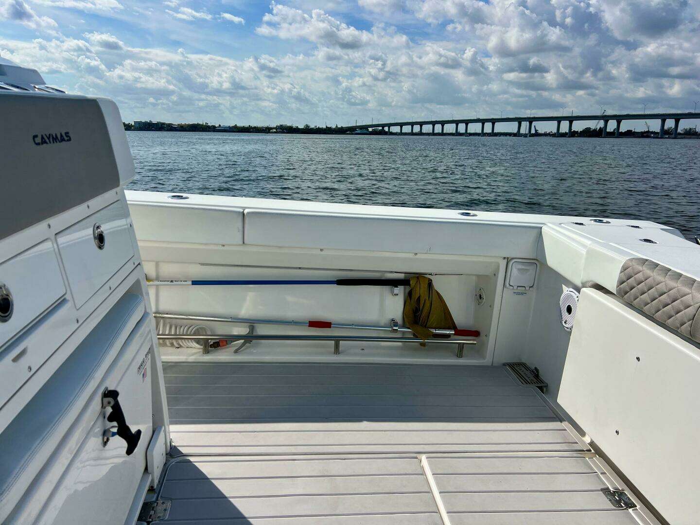 - Self-bailing cockpit with (4) large cockpit scuppers and custom stainless steel CaymasTM branded cover plate