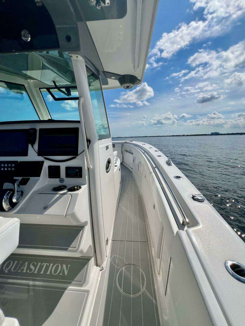 - Hinged console helm station for easy access to the backside of helm for electronics and rigging