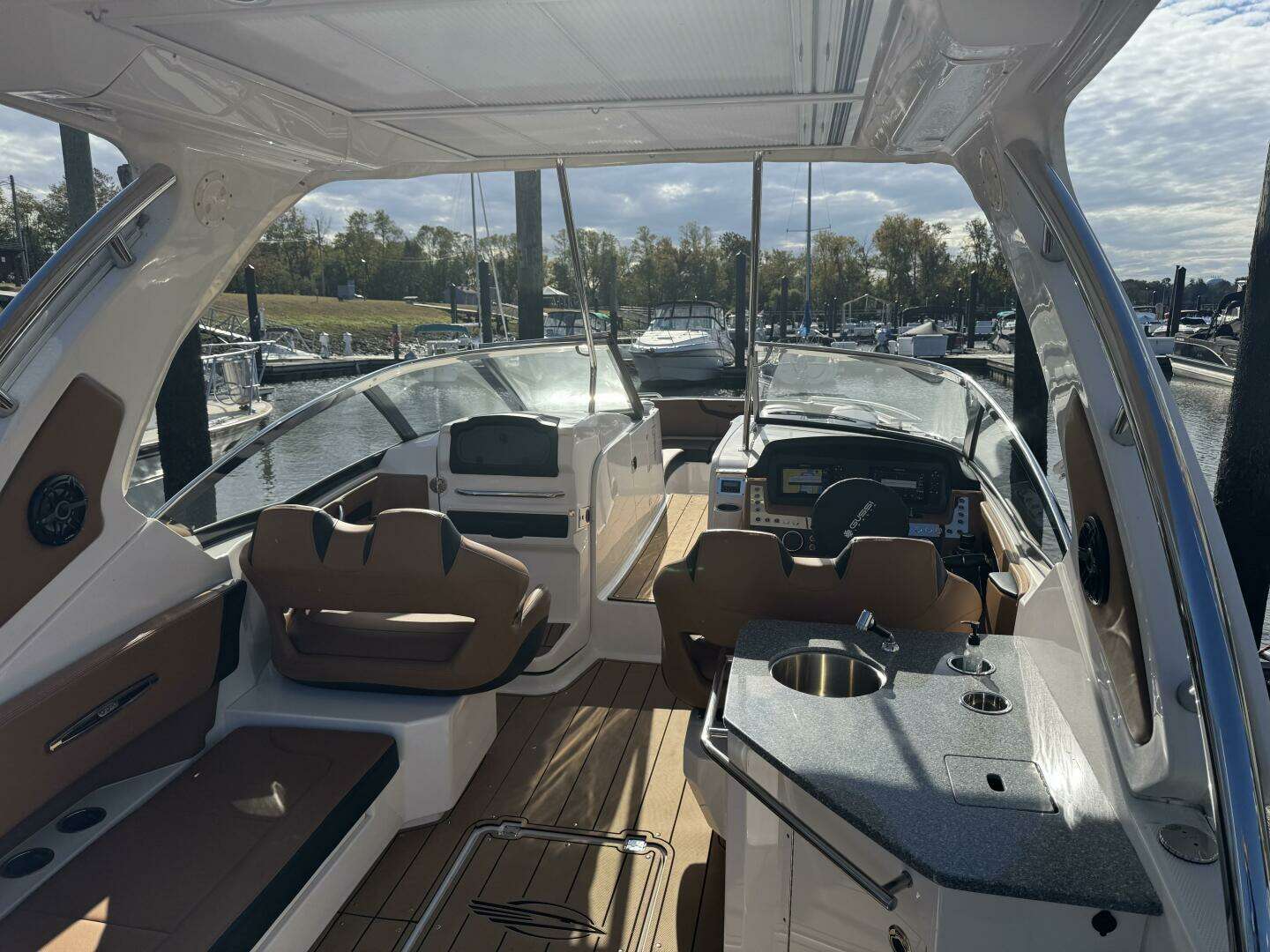 The amazing 347 SSX offers the most demanding of boaters the best of both worlds with a supersized bowrider layout and a full-beam enclosed cabin. We've never built a boat more versatile or impressive than the 347 SSX. Massive seating capacity. Luxury appointments. Clever features. Go anywhere performance. But the real magic of Chaparral innovation happens when you open the port side entry door and discover a space defying lavish full beam cabin. While most rivals at this length settle for a split beam design where neither area satisfies, the 347's unified cabin comes complete with an entertainment console, enclosed head and overnight accommodations for two. The 347 SSX comes standard with twin 9" touch screen displays with Chartplotter, GPS, WiFi, Insight Charts, Transducer and Engine Data functions. A full digital instrumentation completes the helm with fog resistant glass lenses, brushed aluminum faces and stainless steel bezels. Our luxurious, leather wrapped steering wheel is sure to make every voyage an enjoyable one.