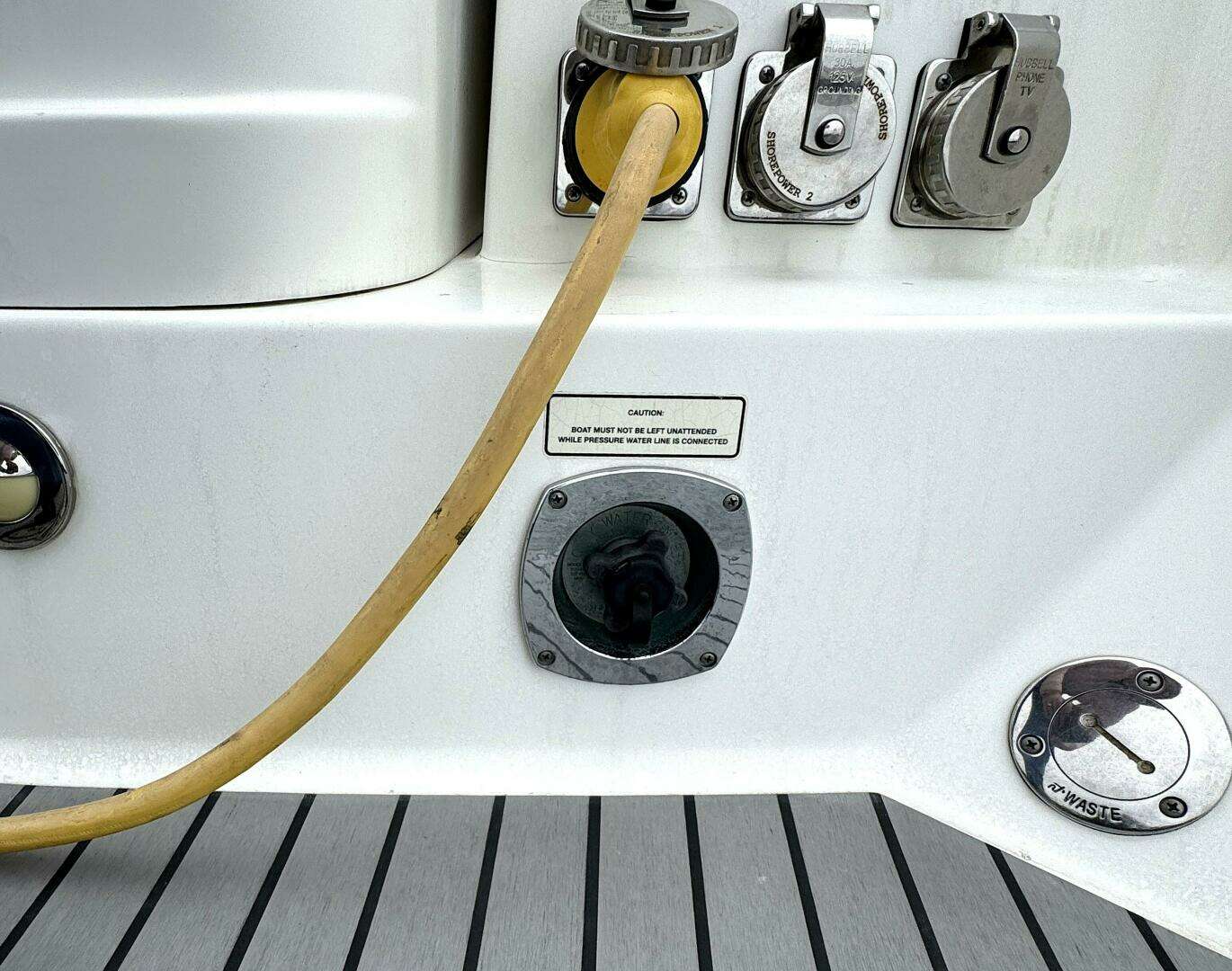 · Polished stainless steel shore power, cable TV & telephone hookups