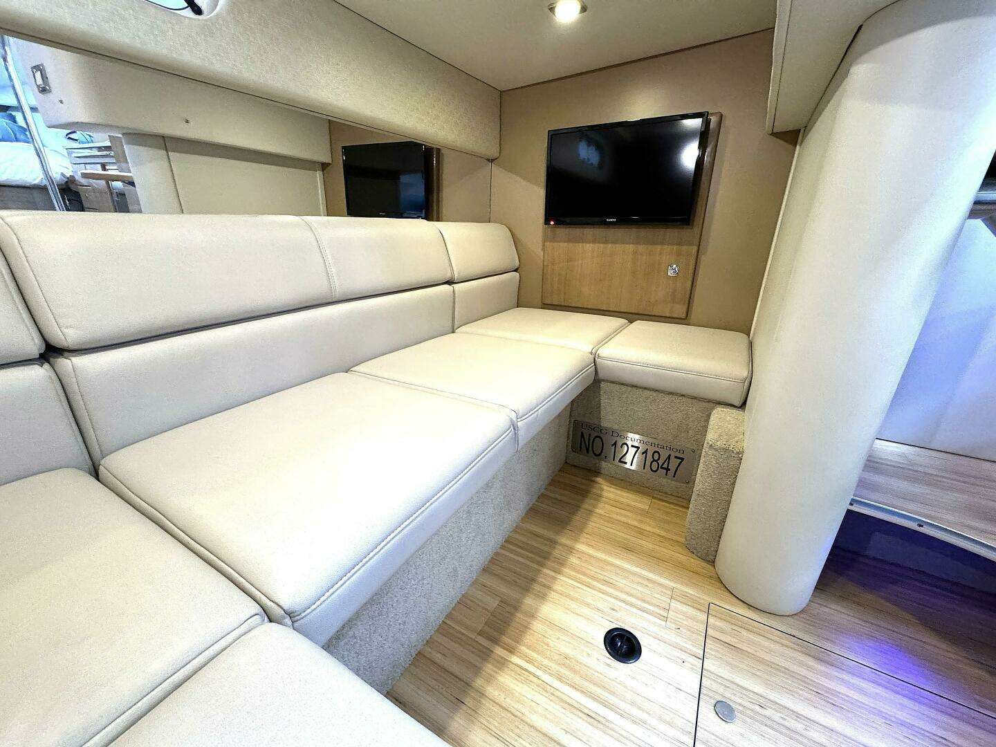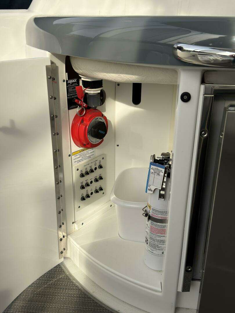 With a robust fiberglass hull, NMMA Yacht Certification, and advanced safety features like automatic fire extinguishers, fume detectors, and multiple bilge pumps, you can cruise with confidence. The 190-gallon fuel tank, 57-gallon freshwater tank, and 40-gallon holding tank ensure you’re ready for extended journeys