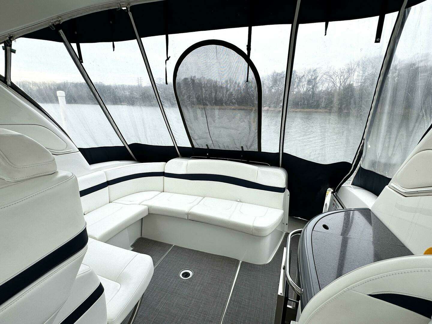Navigate with ease using the Raymarine E127 12” Chartplotter, Vessel View 7, and a suite of electronic equipment designed for safety and convenience. Enjoy your favorite music with a high-end Clarion stereo system and marine-grade speakers throughout the cockpit and cabin.